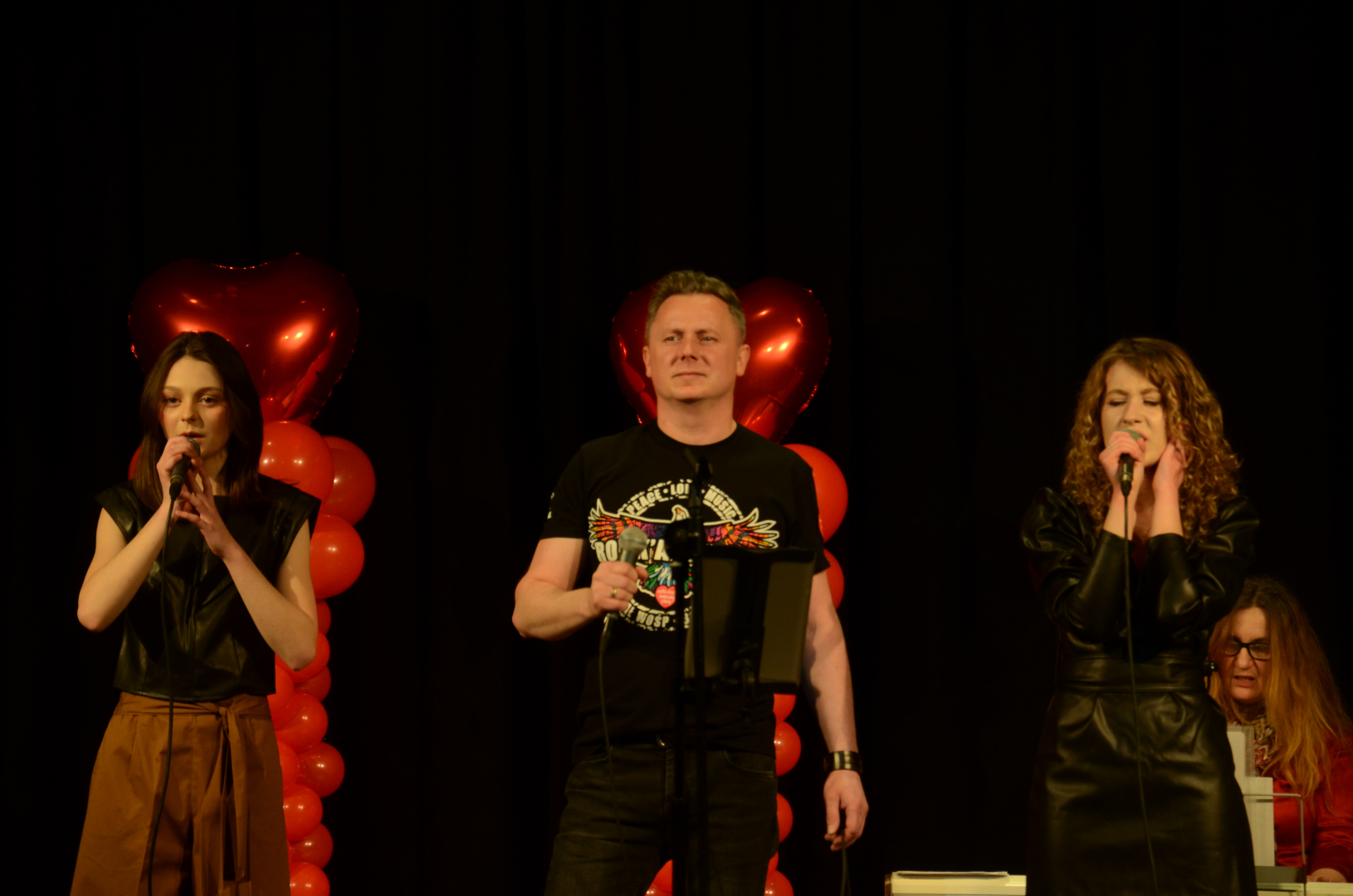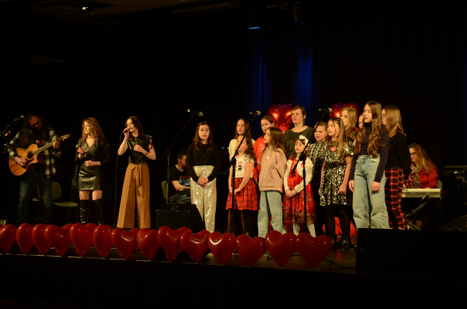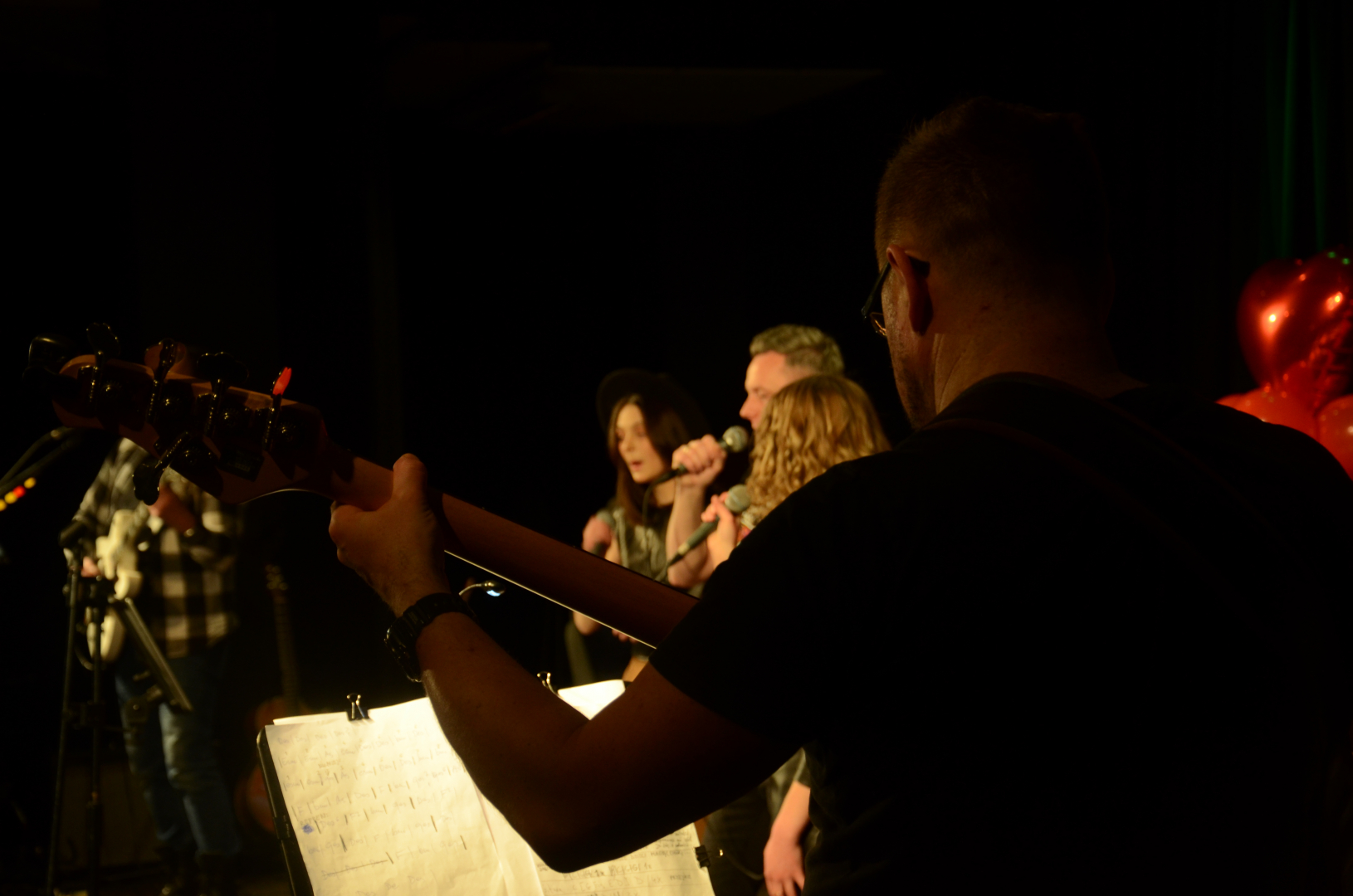 Przed kamerami ustawionymi w sali widowiskowej Regionalnego Centrum Kulturalno-Bibliotecznego w pierwszej części wystąpili Zuzanna Łazarz, Kornelia Woda oraz Tomasz Łazarz. Akompaniował im zespół muzyczny w składzie: Teresa Szydłowska (keyboard), Grzegorz Filipek (gitara), Krzysztof „Arnold” Michalski (gitara, wokal), Karol Niemiec (Daniel Pabian (gitara basowa) oraz Krzysztof Szydłowski (perkusja), który specjalnie na te okazję stworzył swój autorski utwór „Dlaczego?” nawiązujący do aktualnych wydarzeń. Ponadto w repertuarze znalazły się covery znanych krajowych i światowych przebojów. W utworze „Happy Christmass” artystom towarzyszył kilkunastoosobowy chórek złożony z uczestników zajęć wokalnych prowadzonych przez Joannę Grandys.
