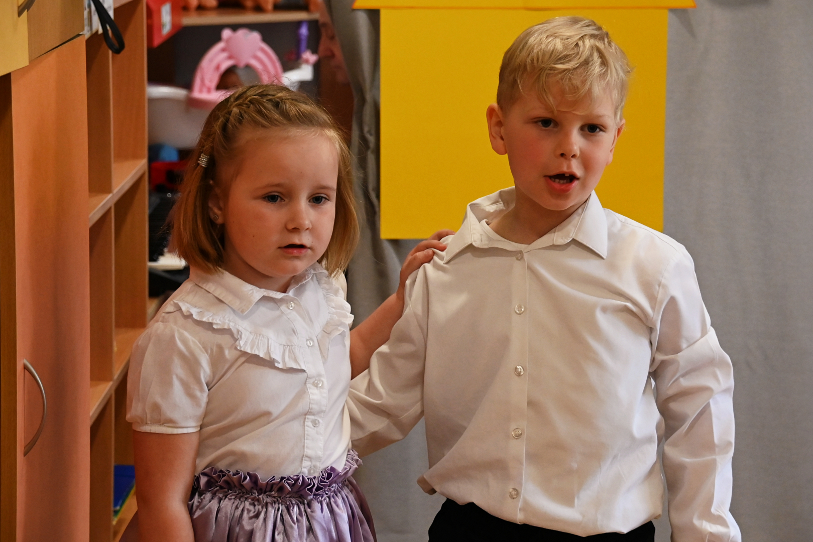 Przedszkolaki uraczyły swoich gości wspaniałymi występami artystycznymi, w których nie zabrakło niespodzianek. Uroczystość rozpoczęła się od hymnu przedszkola, po czym zaprezentowały się „starszaki”, czyli „Pszczółki”, którym do tańca akompaniowali Janusz Cierlik oraz Andrzej Soja.