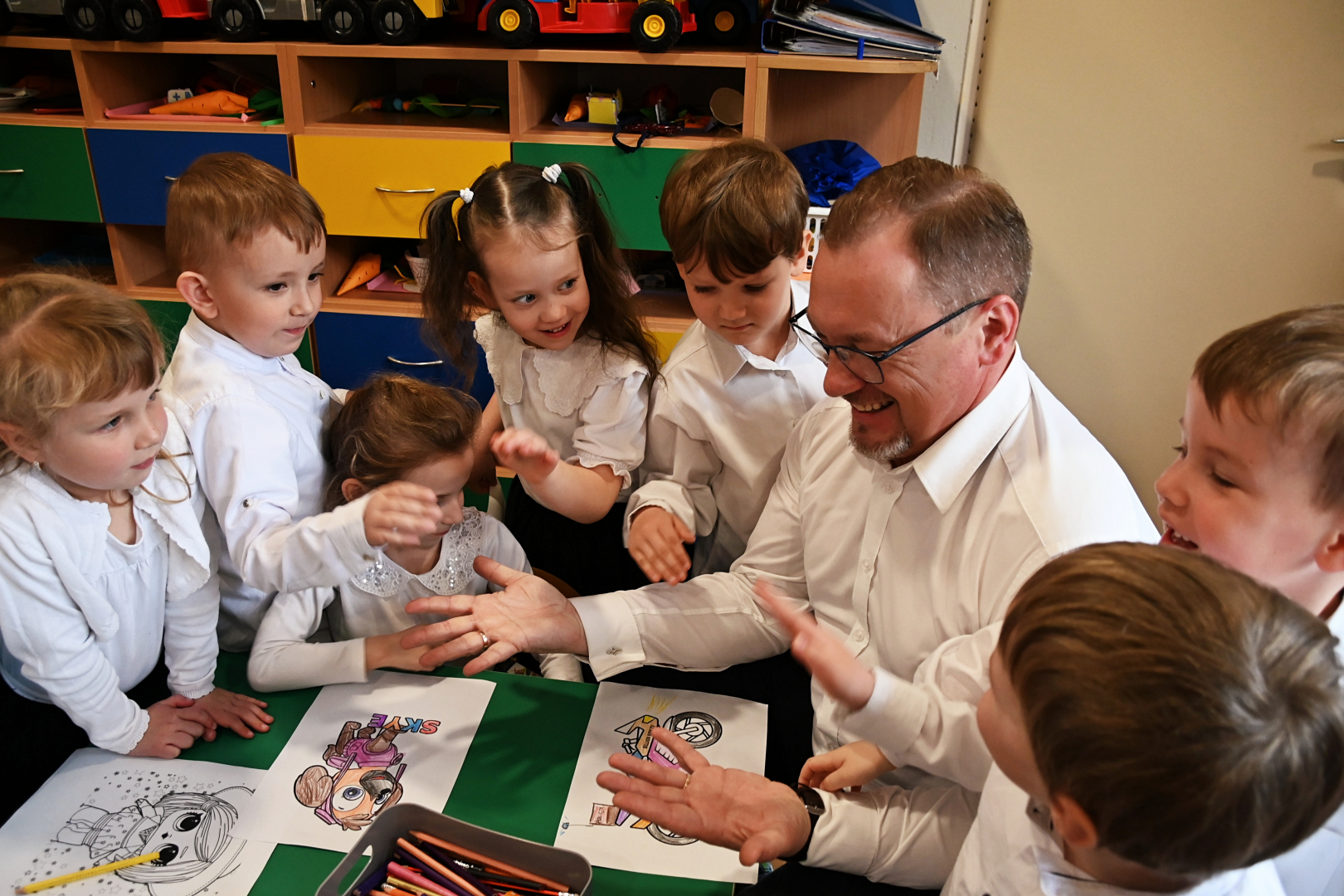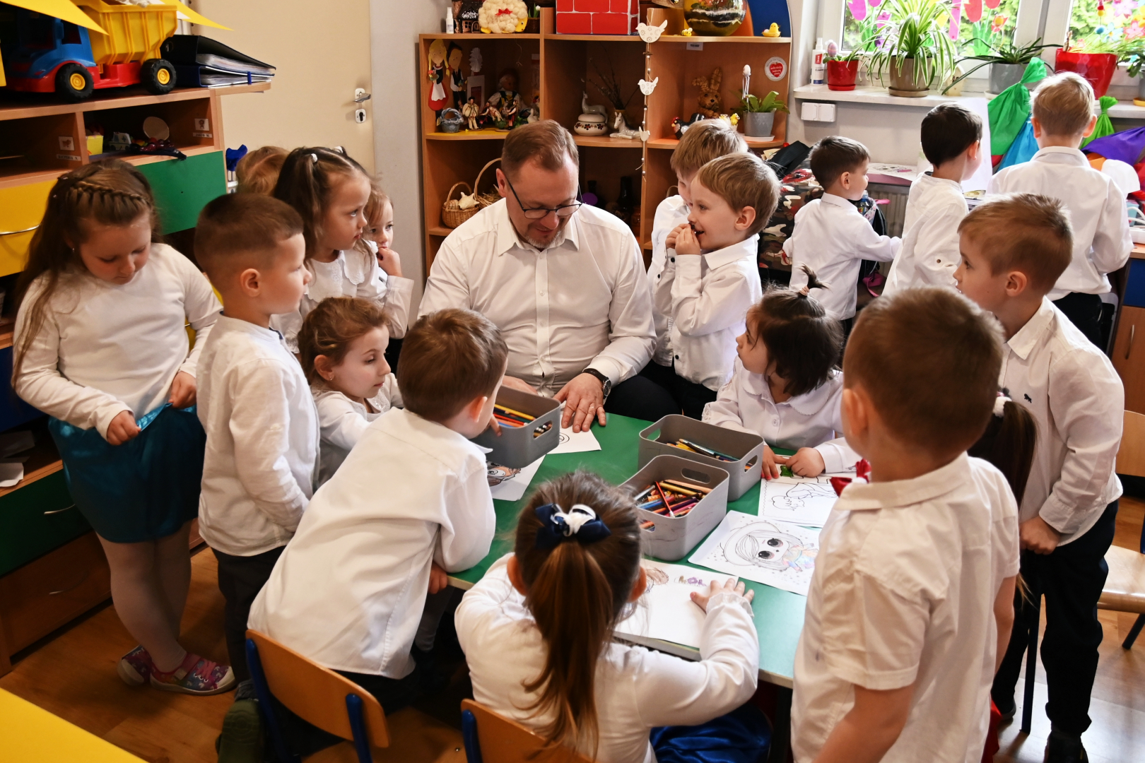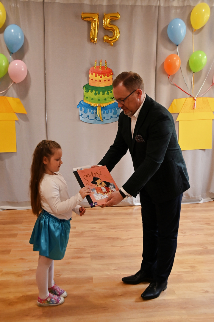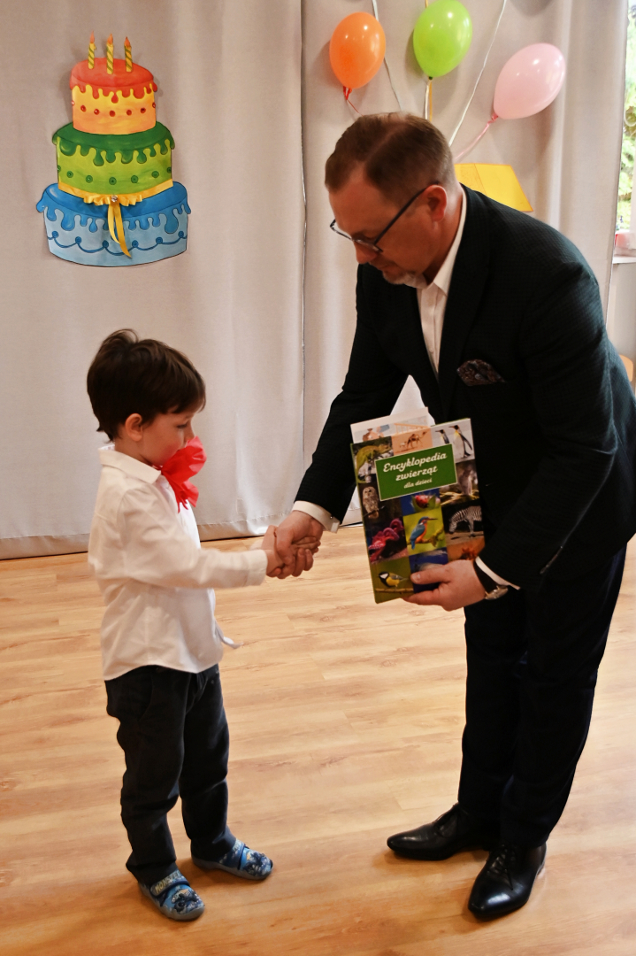 Ostatnim punktem jubileuszowych uroczystości było rozstrzygnięcie przedszkolnego konkursu plastycznego „Za co lubię moje przedszkole?” Jury wskazało 12 laureatów, którym nagrody wręczał Tomasz Latocha. Burmistrz wręczył też wszystkim dzieciom osobne upominki – zestawy gier i zabawek, a także sporych rozmiarów kosz słodyczy.