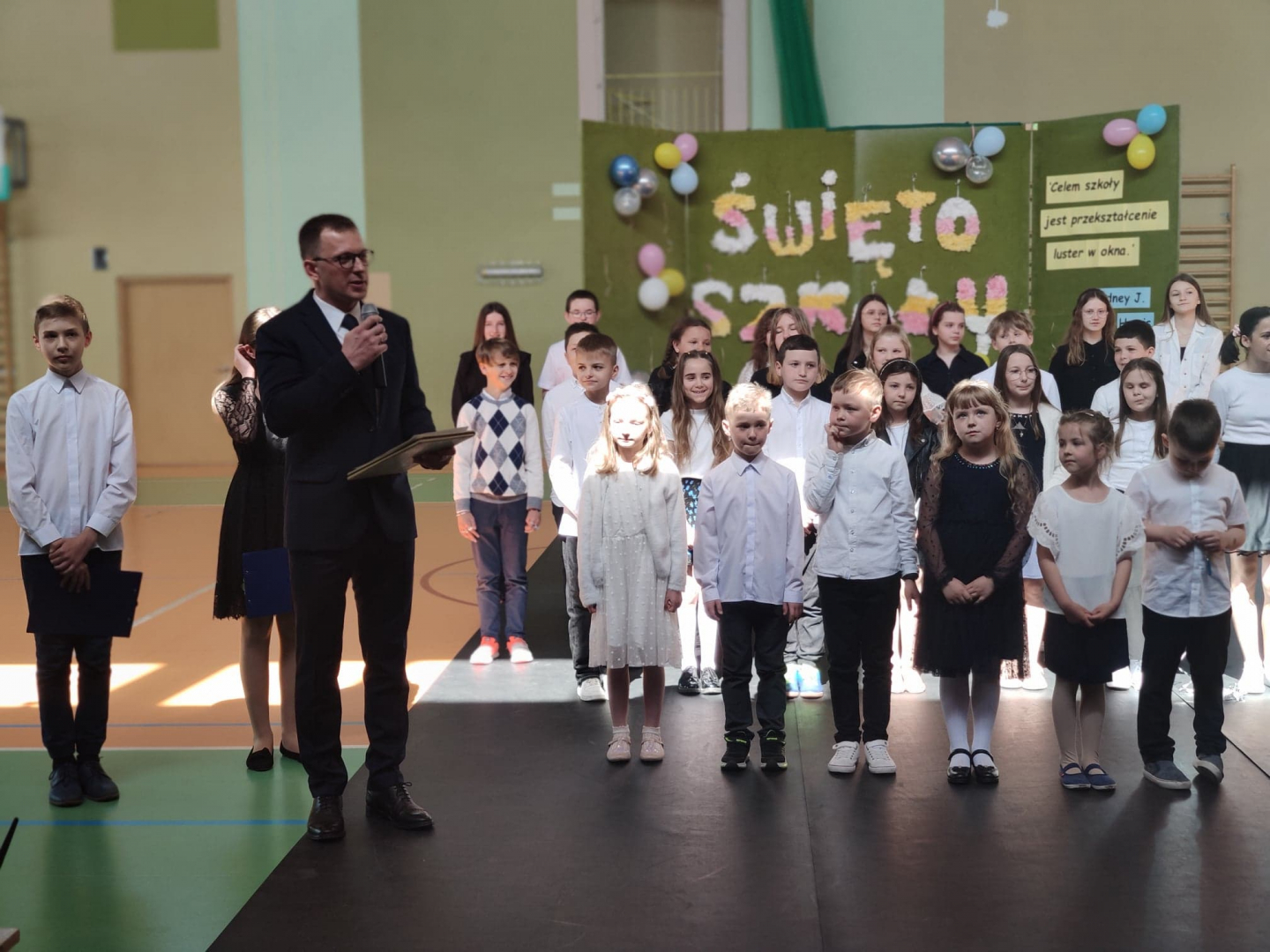 W Święcie Szkoły uczestniczyli także emerytowana nauczycielka Barbara Stachowicz, przedstawiciele Rady Rodziców oraz burmistrz Brzeska Tomasz Latocha, który na ręce dyrektora Marka Serwina przekazał ufundowany przez Urząd Miejski markowy sprzęt sportowy, który będzie służył podczas lekcji wychowania fizycznego i organizowanych w Okocimiu zawodów.