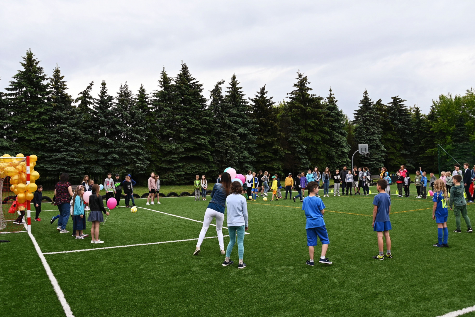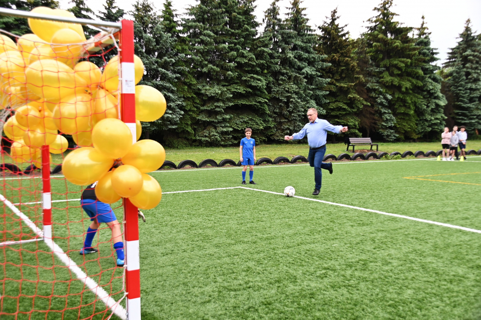 Zanim zawody się rozpoczęły, do protokołu został wpisany pierwszy oficjalnie zdobyty gol na nowym boisku. Strzelcem tej historycznej bramki był Tomasz Latocha, który uczynił to w sposób spektakularny – nie ze stałego fragmentu gry, ale po zespołowej akcji, zakończonej efektownym dryblingiem i celnym strzałem. Do gola burmistrz dołożył jeszcze okazałych rozmiarów worek z piłkami, które będą służyć podczas lekcji wychowania sportowego i zajęć pozalekcyjnych. Rozgrywkom towarzyszyły pokazy w wykonaniu szkolnego zespołu cheerleaderek. Kulminacyjnym punktem czwartkowych uroczystości był międzypaństwowy mecz piłki nożnej Polska – Ukraina, w którym zmierzyli się uczniowie z Brzeska oraz ich ukraińscy koledzy, którzy od pewnego czasu – z wiadomych względów – uczęszczają do tej szkoły.