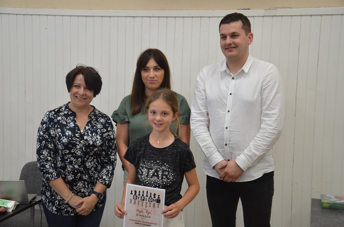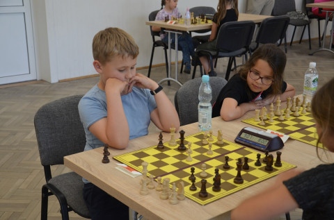Klasyfikacja w młodszej kategorii jest najlepszym potwierdzeniem tego, że warto uczęszczać na zajęcia szachowe organizowane przez Miejski Ośrodek Kultury. Dwa pierwsze miejsca zajęli właśnie uczestnicy tych zajęć – Jakub Bober (jedyny z kompletem sześciu zwycięstw) i Konrad Duraczyński. Dużym zaskoczeniem było trzecie miejsce dziewczynki, reprezentującej gospodarzy Nadii Stasik. Całkiem dobrze radziła sobie najmłodsza w całej stawce Liliana Lechowicz (3 zwycięstwa), która dopiero w grudniu ukończy 8 lat. W turnieju wziął udział jej brat Radosław (2. miejsce w kategorii starszej), a zmaganiom przyglądał się bacznie ich tata, który wprowadził swoje dzieci w arkana szachowej sztuki. W tej starszej kategorii trzech pierwszych zawodników zgromadziło po 5 punktów (na 6 możliwych), toteż o końcowej klasyfikacji decydowała dodatkowa drabinka turniejowa.