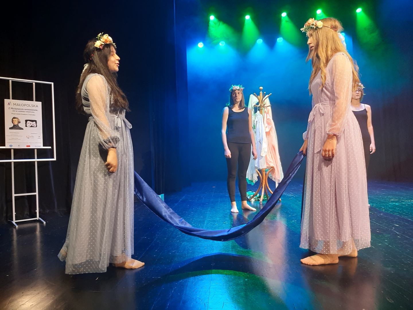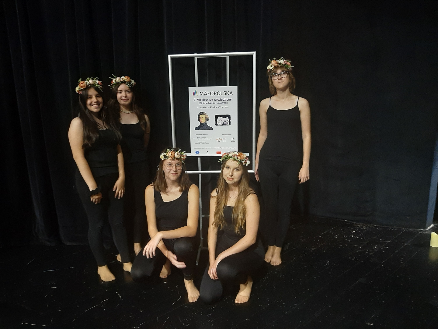 W nagrodzonym spektaklu wystąpiły: Zofia Baniak, Maja Gorzelak, Kinga Kolbusz, Julia Kondziołka, Amelia Kozioł, Antonina Maciasz i Wiktoria Żak. Opiekunkami szkolnego koła teatralnego są Agata Kawalerczyk oraz Magdalena Głowacka-Zastawnik. Obie panie wyreżyserowały to przedstawienie, scenariusz napisała pierwsza z nich. Kanwę stanowiły znane mickiewiczowskie ballady – „Romantyczność”, „Lilie” oraz „Świtezianka”.