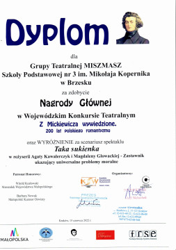 Burmistrz Brzeska przyjął w siedzibie Urzędu Miejskiego uczennice i nauczycielki tworzące działający w Szkole Podstawowej zespół teatralny MISZMASZ. W spotkaniu uczestniczyła także dyrektorka tej placówki Dorota Wójcik. Tomasz Latocha wręczył swoim gościom okolicznościowe upominki w uznaniu dotychczasowych sukcesów odniesionych na licznych konkursach i festiwalach. Ostatnim z nich jest zajęcie I miejsca w Wojewódzkim Konkursie Teatralnym „Z Mickiewicza wywiedzione. 200 lat polskiego romantyzmu”.