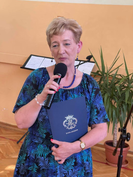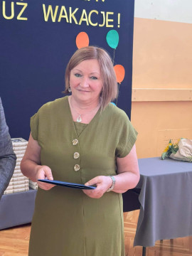 Maria Stolińska jest nauczycielką matematyki w Zespole Szkolno-Przedszkolnym, z którym związana jest od początku kariery zawodowej (w latach 1999-2017 uczyła w Publicznym Gimnazjum nr 2 w Brzesku). Od 2002 roku pełni funkcję zastępcy dyrektora szkoły. Z racji nie tylko stanowiska, ale przede wszystkim wieloletniego doświadczenia chętnie otacza opieka i wsparciem młodych nauczycieli. Nieoceniona jest w rozwiązywaniu i łagodzeniu jakichkolwiek problemów i konfliktów. Przez 35 lat pracy dała się też poznać jako specjalistka od promocji szkoły na zewnątrz. Udziela się również społecznie, prowadząc dodatkowe, nieodpłatne lekcje z matematyki. Od 2001 roku współpracuje z Okręgową Komisją Egzaminacyjną w Krakowie, a od 2022 roku jest Przewodniczącą Zespołu Egzaminatorów w powiecie brzeskim. Cały jej dorobek zawodowy sprawił, że jest osobą bardzo lubianą i szanowaną wśród uczniów, rodziców, nauczycieli i pracowników szkoły. Bardzo często była też nagradzana za swoje osiągnięcia – dziesięciokrotnie przez dyrektora szkoły i dwa razy przez burmistrza Brzeska. Ta trzecia nagroda jest podsumowaniem wieloletniej, rzetelnej pracy nauczycielki, która wraz z końcem roku szkolnego przechodzi na zasłużoną emeryturę.