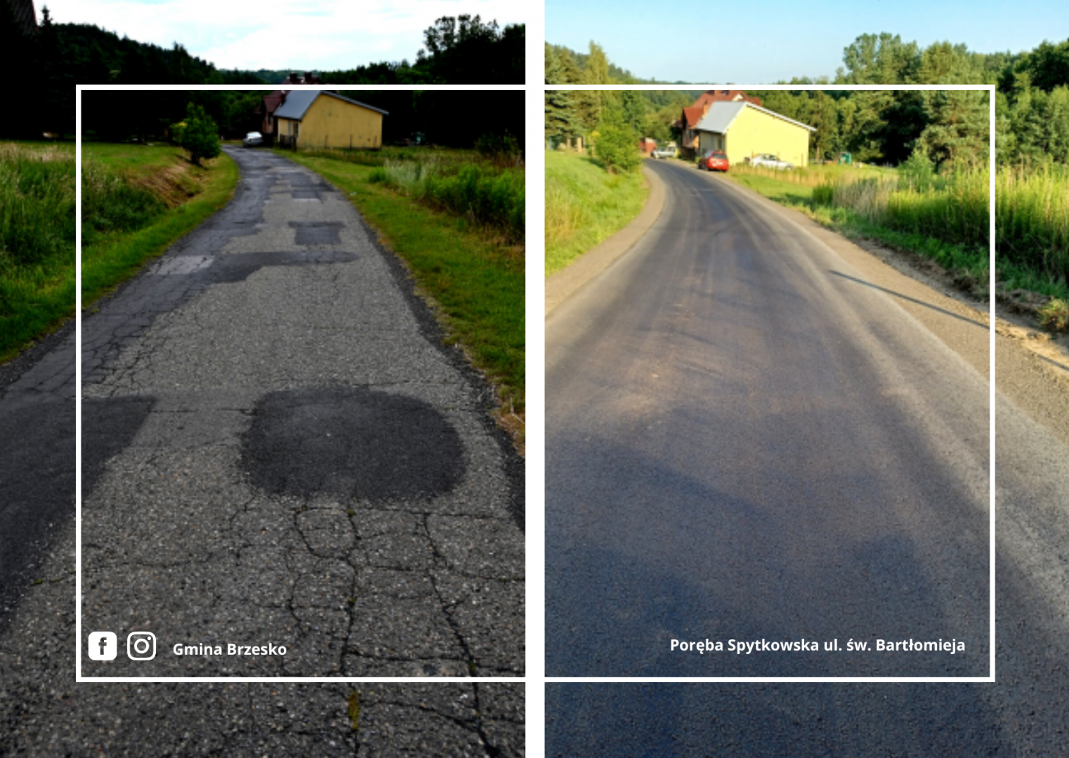 Zgodnie z ustalonym wcześniej harmonogramem kolejne drogi gminne zostały poddane modernizacji. Prace remontowe polegały na położeniu asfaltu na jezdni i poboczach na ulicy Bernackiego w Jadownikach (od drogi krajowej do ulicy Piastowskiej w Brzesku) oraz na ulicy Św. Bartłomieja w Porębie Spytkowskiej, a także pokryciu destruktem sporego fragmentu ulicy Sąsiedzkiej w Mokrzyskach oraz wykonaniu korytowania, podbudowy i położeniu kruszywa na ulicy Łuckiej w Buczu. Remontami objęte zostały również ulice Stolarska i Wiślana boczna w Mokrzyskach oraz Kasztanowa w Jasieniu. W tych trzech przypadkach zastosowano destrukt.