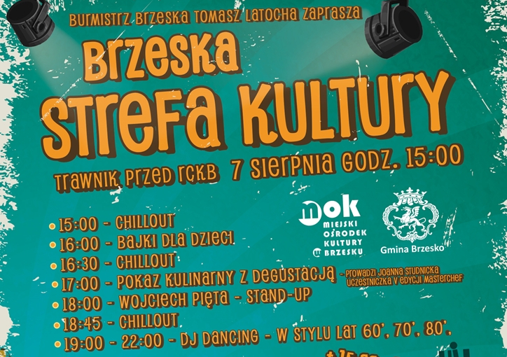 Burmistrz Brzeska Tomasz Latocha serdecznie zaprasza mieszkańców gminy na Brzeską Strefę Kultury – wydarzenie organizowane przez Miejski Ośrodek Kultury oraz Urząd Miejski. Impreza odbędzie się w niedzielę 7 sierpnia