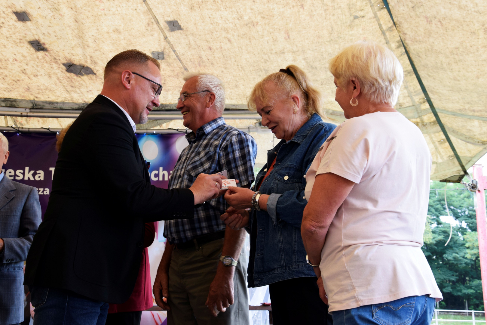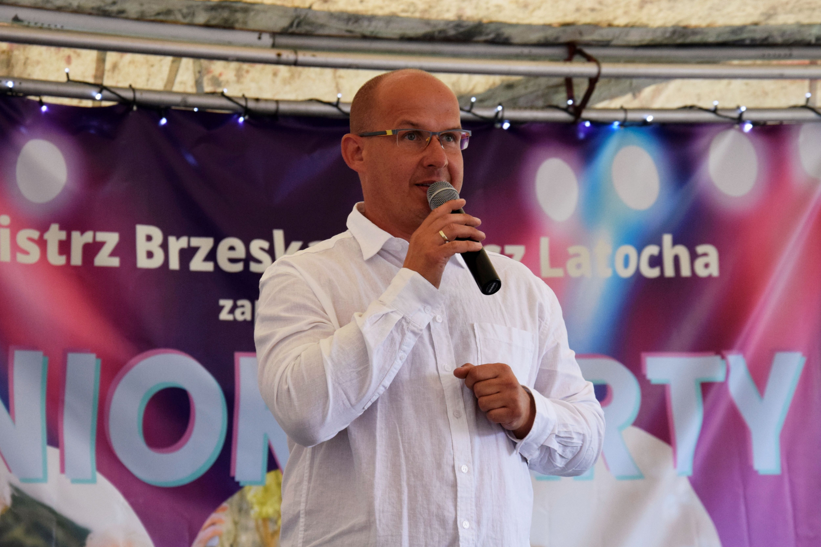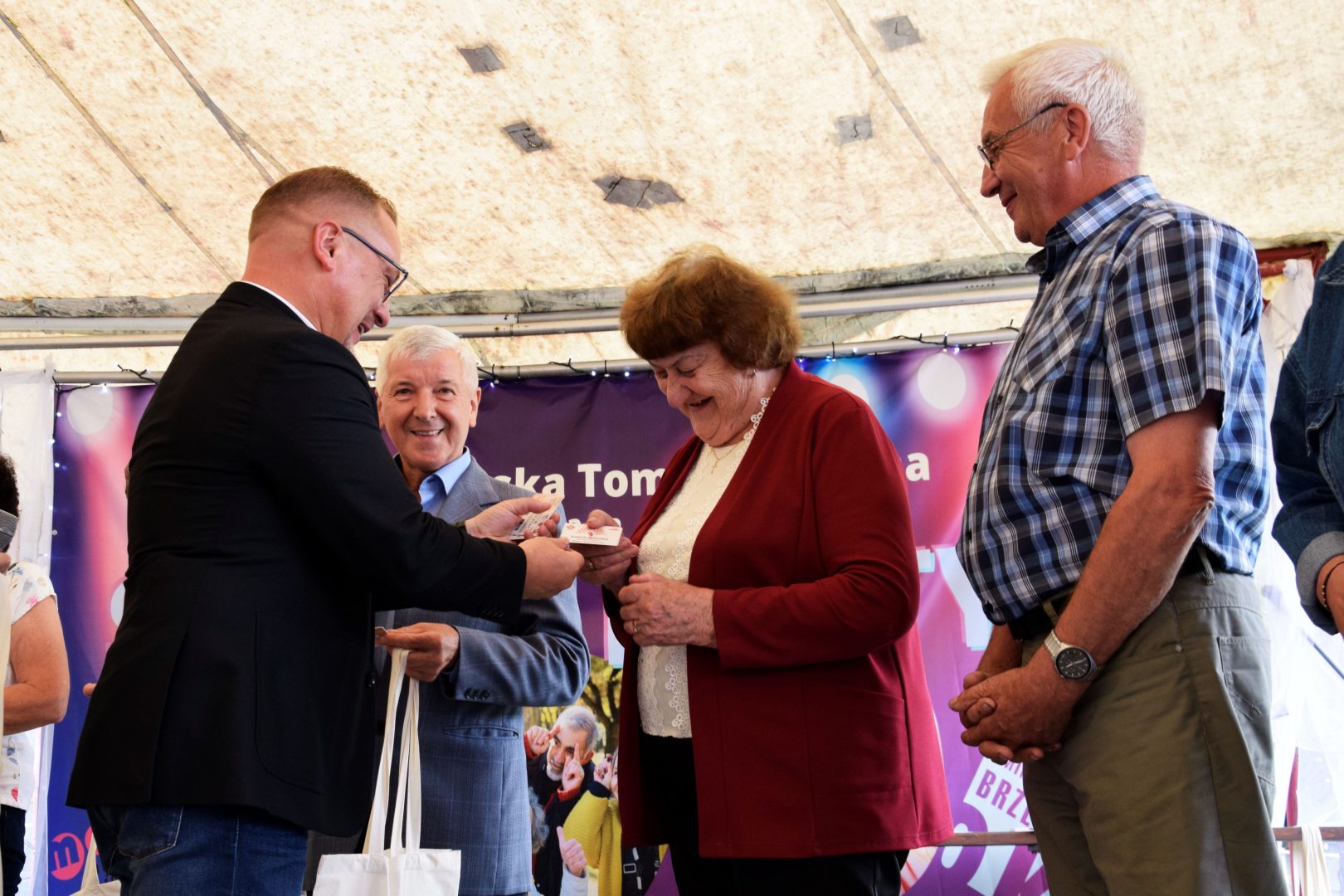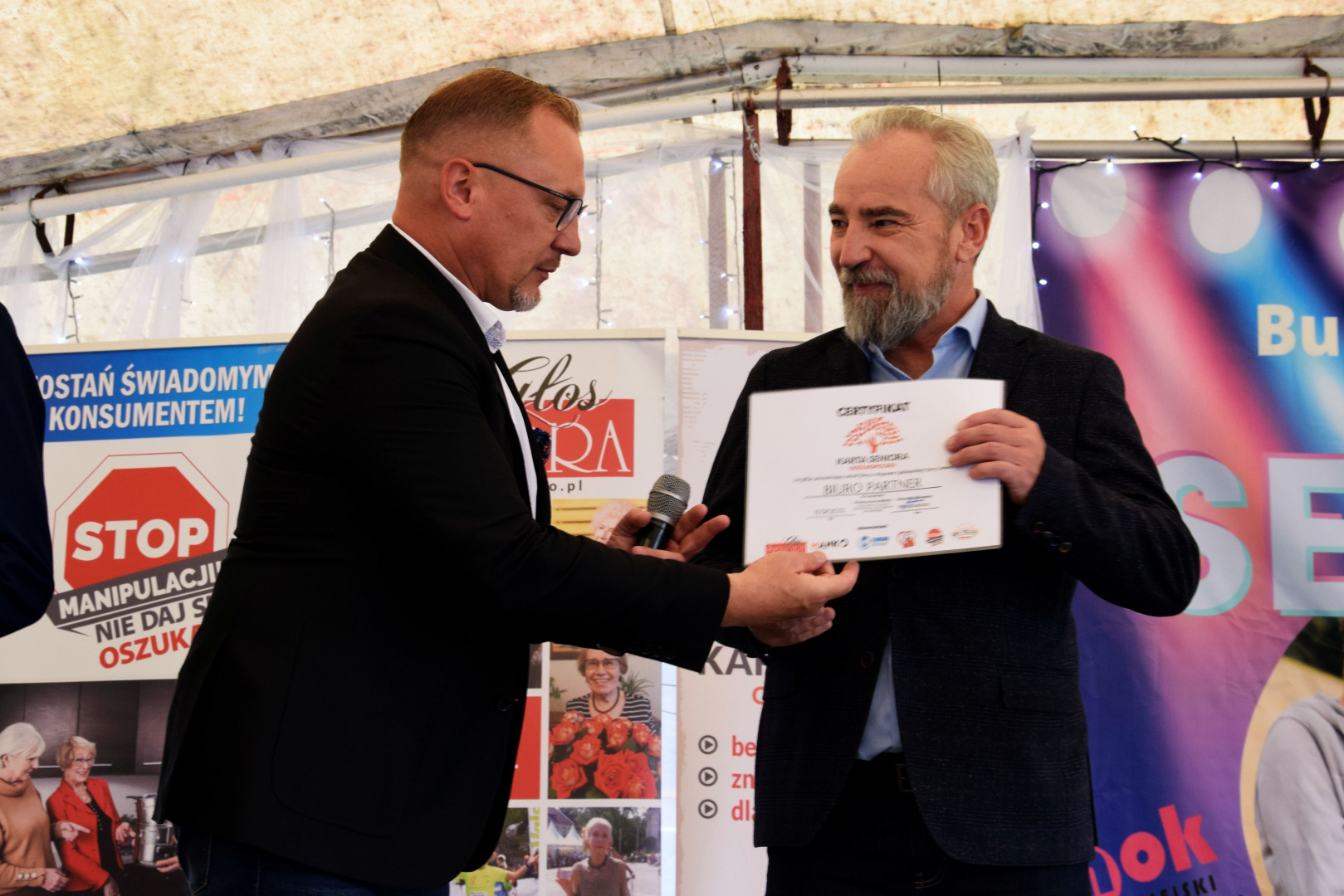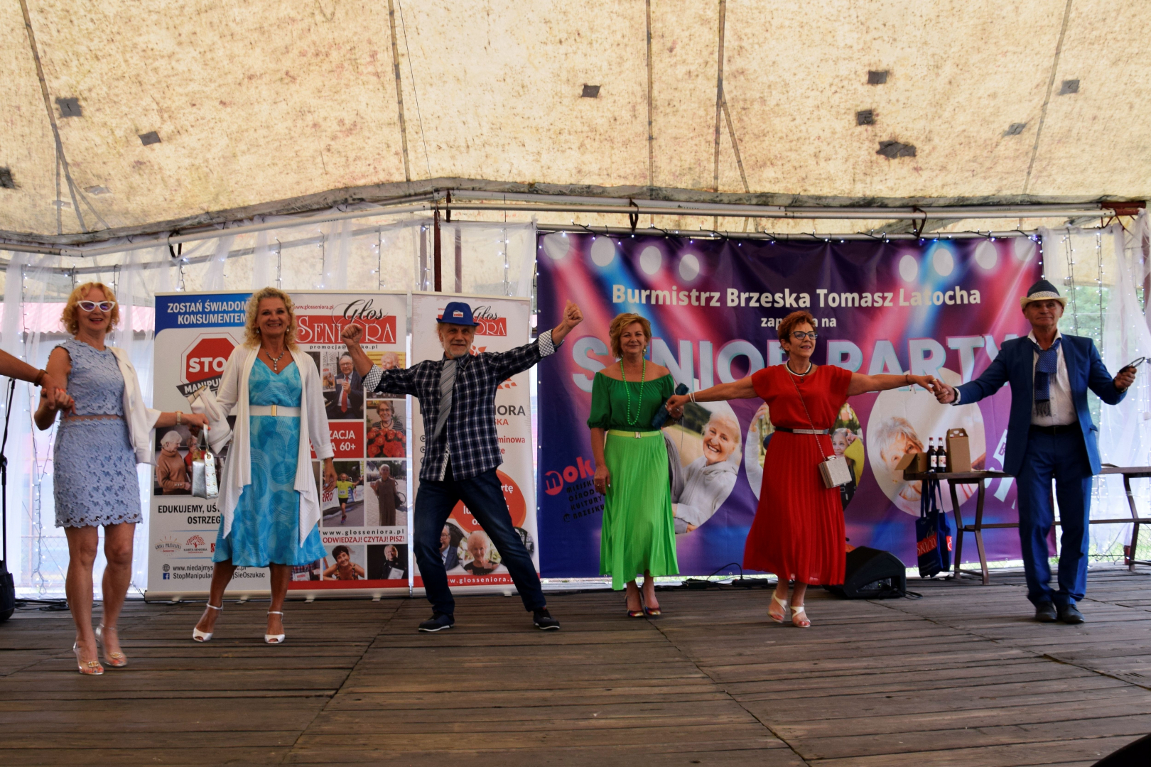 Pierwszą część Senior Party poprowadzili sygnatariusze porozumienia dotyczącego programu „Gmina Przyjazna Seniorom” – prezes Stowarzyszenia MANKO Łukasz Salwarowski oraz burmistrz Brzeska Tomasz Latocha, który na wstępie otrzymał z rąk prezesa certyfikat potwierdzający przystąpienie naszej gminy do projektu. Pierwsze osiem Ogólnopolskich Kart Seniora zostało oficjalnie wręczonych na piknikowej scenie. Kolejne OKS rozdawane były przez cały czas trwania imprezy – w sumie wydano ich około 450. Prezes MANKO oraz burmistrz wręczyli także certyfikaty potwierdzające przystąpienie do programu przez pierwsze brzeskie przedsiębiorstwa.