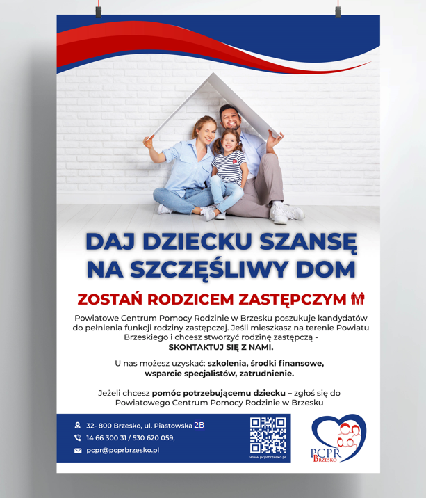 Pomóż nam stworzyć bezpieczny, pełny miłości i szacunku dom dla potrzebujących dzieci. Zapraszamy mieszkańców Powiatu Brzeskiego, zainteresowanych utworzeniem rodziny zastępczej, do skontaktowania się z pracownikami PCPR w Brzesku. Szczegółowe informacje można uzyskać pod numerem telefonu 14 66 300 31 / 530 620 059 oraz na stronie www.pcprbrzesko.pl lub kontaktując się bezpośrednio w siedzibie PCPR w Brzesku przy ul. Piastowska 2b.