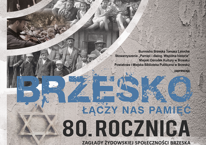 Burmistrz Brzeska, Stowarzyszenie "Pamięć i dialog. Wspólna historia", Miejski Ośrodek Kultury w Brzesku oraz Powiatowa i Miejska Biblioteka Publiczna zapraszają na wydarzenie "Brzesko - łączy nas pamięć" organizowane 10-11 września w 80.rocznicę zagłady żydowskiej społeczności Brzeska.