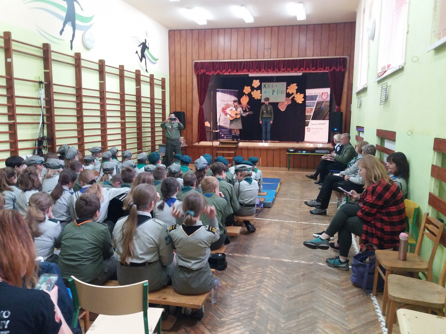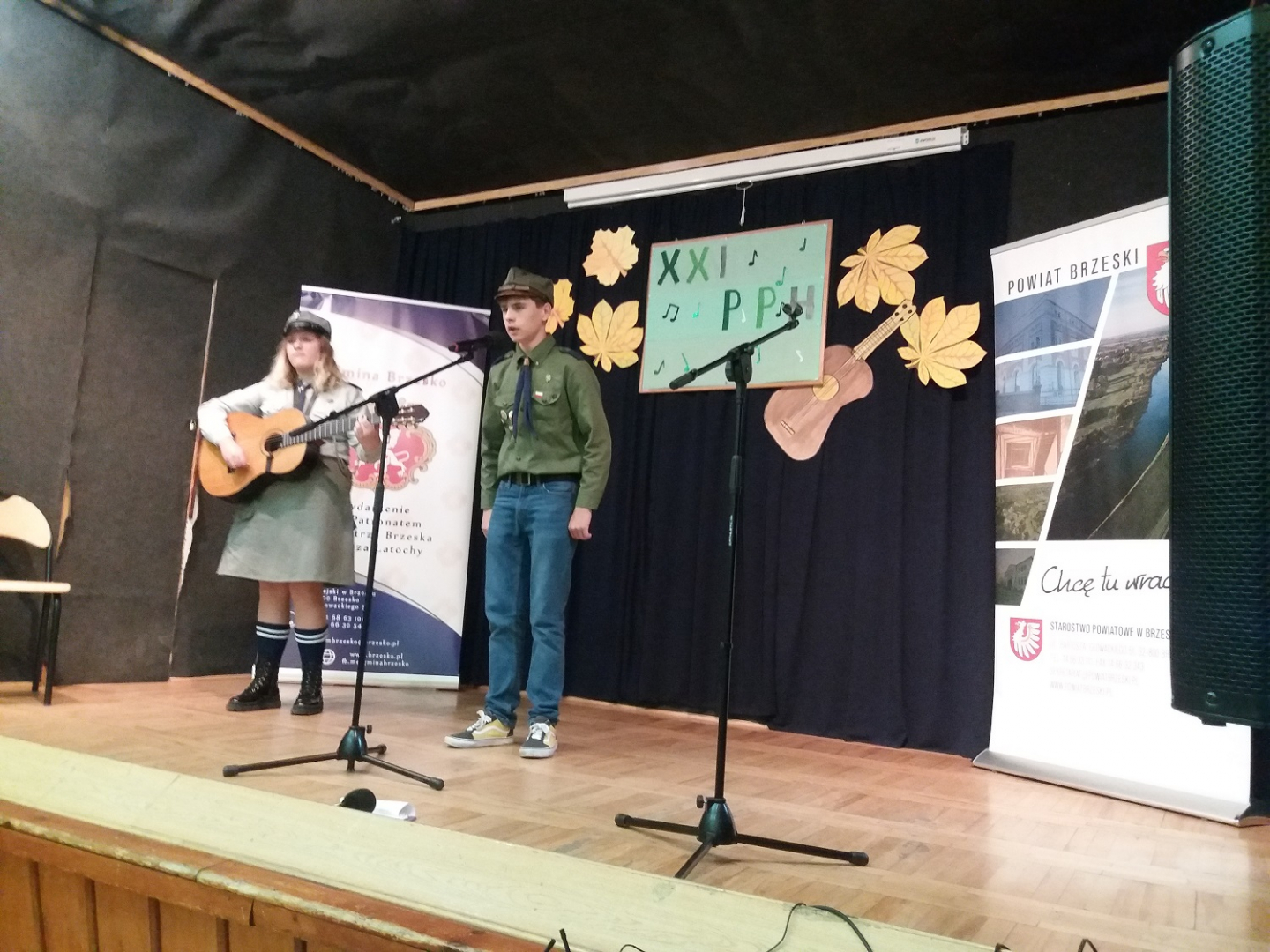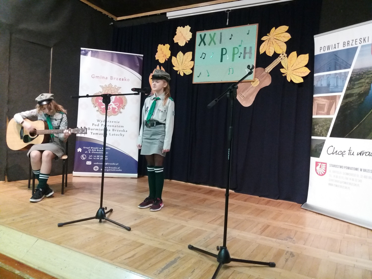 Przed licznie zgromadzoną publicznością wystąpiło 7 zespołów i 11 solistów. Największym przebojem przeglądu uznana została piosenka „Gdy już ciemna noc zapada”, którą brawurowo przy wtórze wszystkich harcerzy wykonywała I Drużyna Harcerska Majora Hubala przy ZS-P Brzesko. Konkursowe prezentacje oceniało jury w składzie: Urszula Halik, Iwona Tomasik, Marek Bochenek i Adam Zydroń.W kategorii gromad i drużyn wyróżnienia otrzymały Gromada Zuchowa Leśne Ludki z Tworkowej oraz I Drużyna Harcerska Majora Hubala przy ZS-P Brzesko. Wśród solistów najwyżej ocenione zostały Maja Ciszkowicz (Drużyna Starszoharcerska z SP Szczepanów), Zuzanna Nizioł (Drużyna Harcerska Grodowi Rycerze z SP Jadowniki) oraz Antonina Rams (Gromada Zuchowa Ogniki z ZS-P Jadowniki). Nagrody, dyplomy i okolicznościowe statuetki wręczali laureatom zastępca burmistrza Brzeska Grzegorz Brach, dyrektor Szkoły Podstawowej w Mokrzyskach Marek Kossoń oraz komendant Hufca ZHP w Brzesku dh Bartłomiej Turlej.