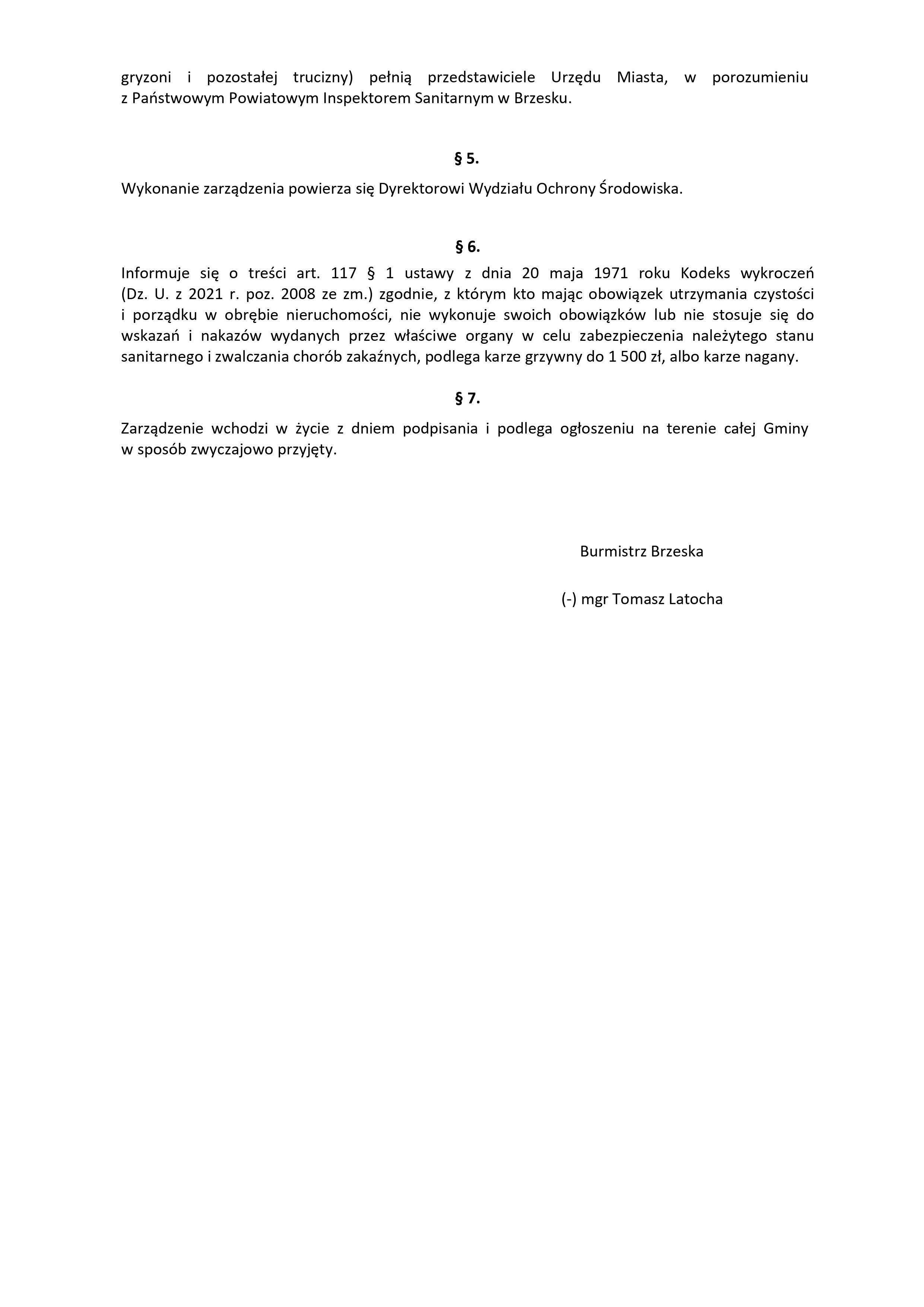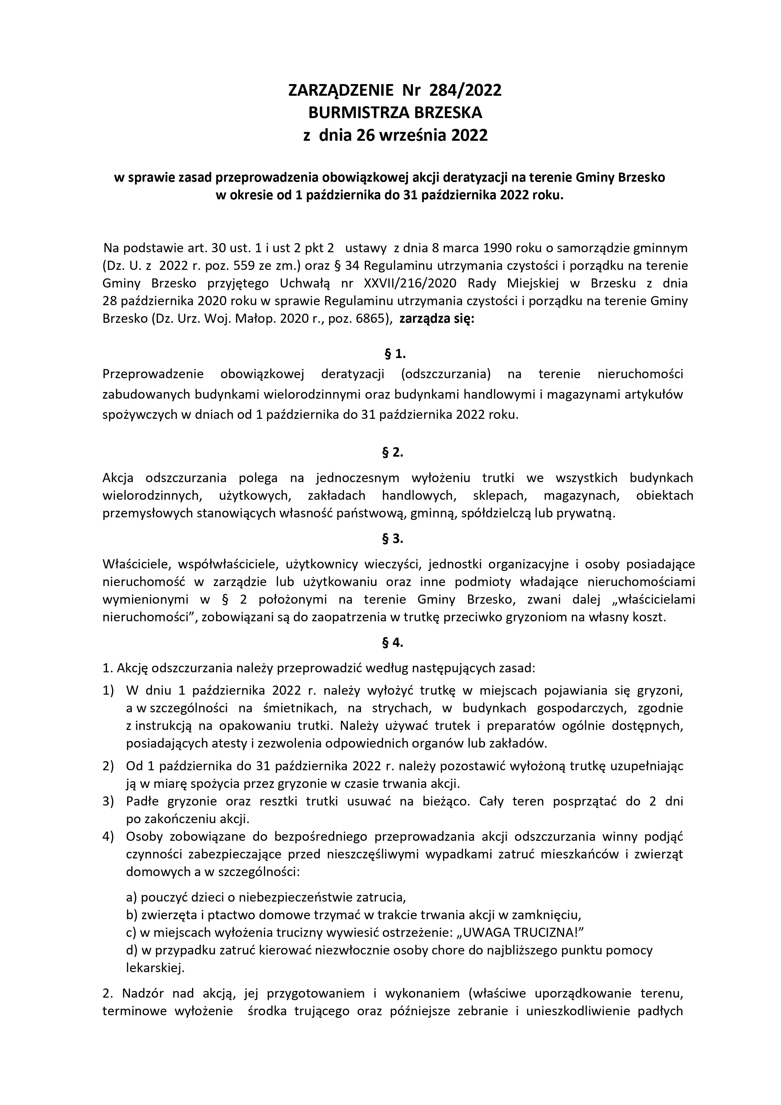 Urząd Miejski w Brzesku informuje, że zgodnie z §2 i §3 Zarządzenia Nr 284/2022 Burmistrza Brzeska z dnia 26 września 2022 r.