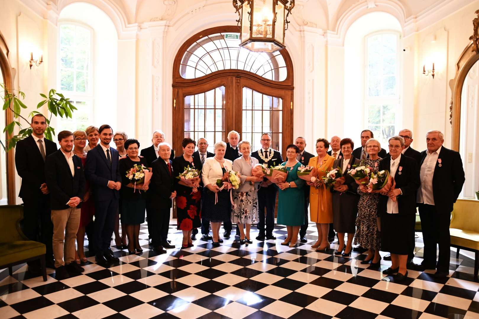 Jubilaci z gminy Brzesko uczestniczyli w dwudniowych uroczystościach, podzieleni na dwie grupy. Pierwszego dnia, 4 października br., do Pałacu Goetz zostało zaproszonych 30 par, które otrzymały okolicznościowe Medale Za Długoletnie Pożycie Małżeńskie przyznane przez Prezydenta RP. Medale wręczali burmistrz Brzeska Tomasz Latocha oraz kierownik USC Aleksandra Fijałkowska. Uroczystość uświetnił występ Aleksandry Kupiec i Krzysztofa Musiała – artystów związanych z Miejskim Ośrodkiem Kultury w Brzesku.