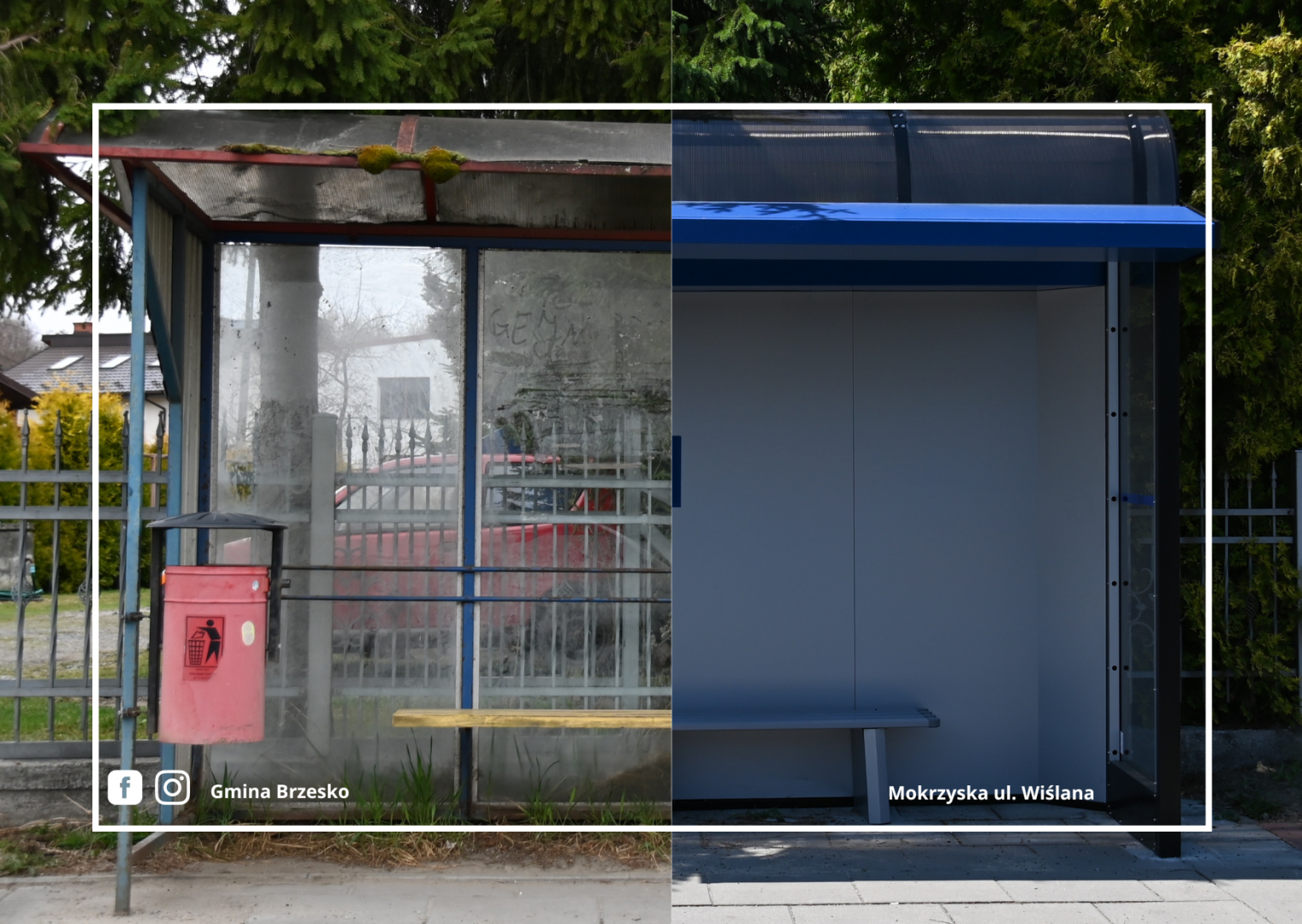 Te dwie nowe wiaty stanęły w Mokrzyskach przy ulicy Wiślanej oraz w Jasieniu przy ulicy Wiedeńskiej. Przy okazji odnowiono jedną z wiat znajdujących się przy ulicy Uczestników Ruchu Oporu w Brzesku. Odnowa polegała na wymianie zdewastowanych wcześniej elementów, uszkodzonych przez zbyt krewkich mieszkańców.