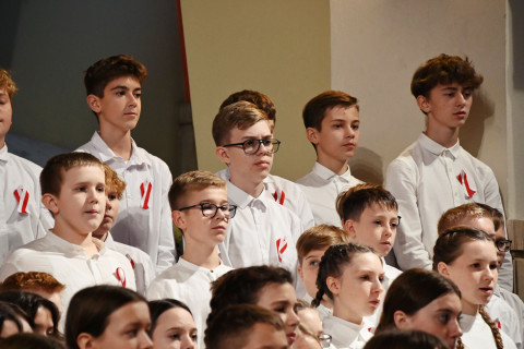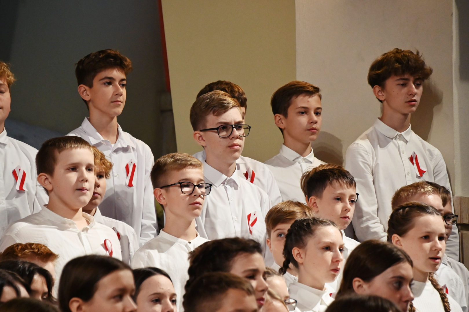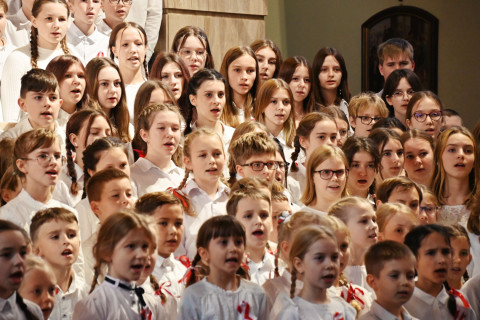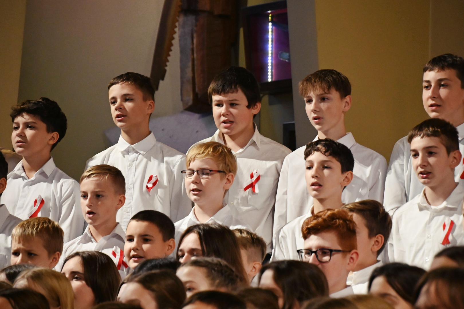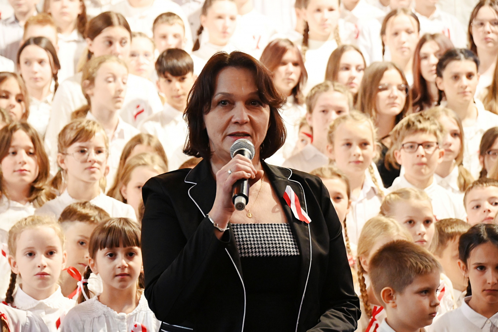 Przed licznie zgromadzoną publicznością wystąpił, dyrygowany przez Barbarę Zelek, ponad 400-osobowy chór złożony z uczniów Szkoły Podstawowej nr 3 w Brzesku. Śpiewacy wykonali kolejno Rotę, Gaude Mater Polonia oraz Mazurka Dąbrowskiego, w pełnej czterozwrotkowej wersji. Byli do tego perfekcyjnie przygotowani (koncert poprzedzony był wieloma próbami, początkowo w poszczególnych grupach, później z całym zespołem), toteż nagrodzeni zostali w pełni zasłużonymi oklaskami na stojąco. Drugą część koncertu wypełnił krótki patriotyczny montaż słowno-muzyczny, przygotowany niejako poza konkursem.