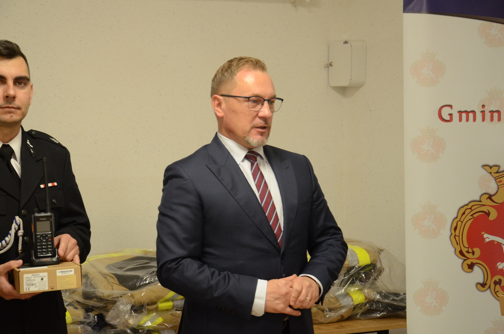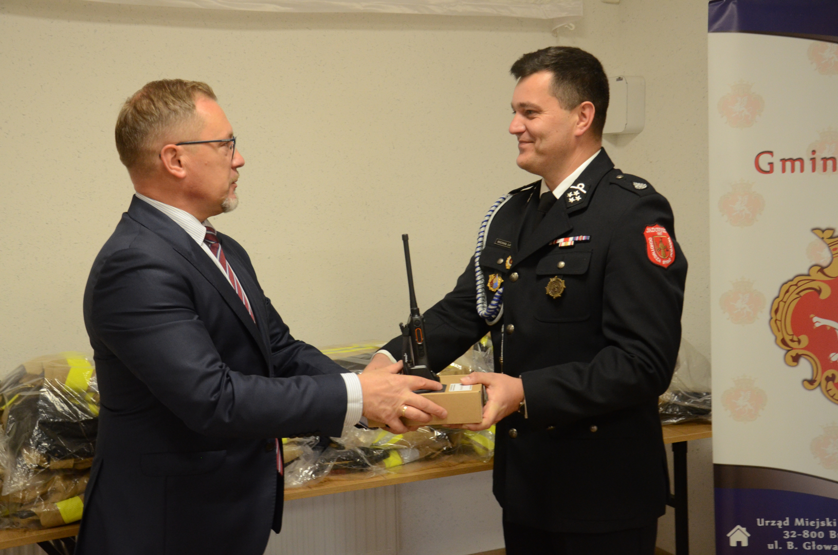 Za przekazane pieniądze druhowie z Jadownik zakupili jeden komplet ubrania ochronnego do działań bojowych oraz dwa radiotelefony z mikrofonogłośnikami. Komplet odzieży składa się z kurtki długości ¾ oraz spodni wykonanych z tkaniny zewnętrznej w kolorze piaskowym, tkaniny wodoodpornej (membrany), podszewki i warstwy termoizolacyjnej. Ubranie spełnia normy zawarte w OPZ KG PSP z 2019 roku.