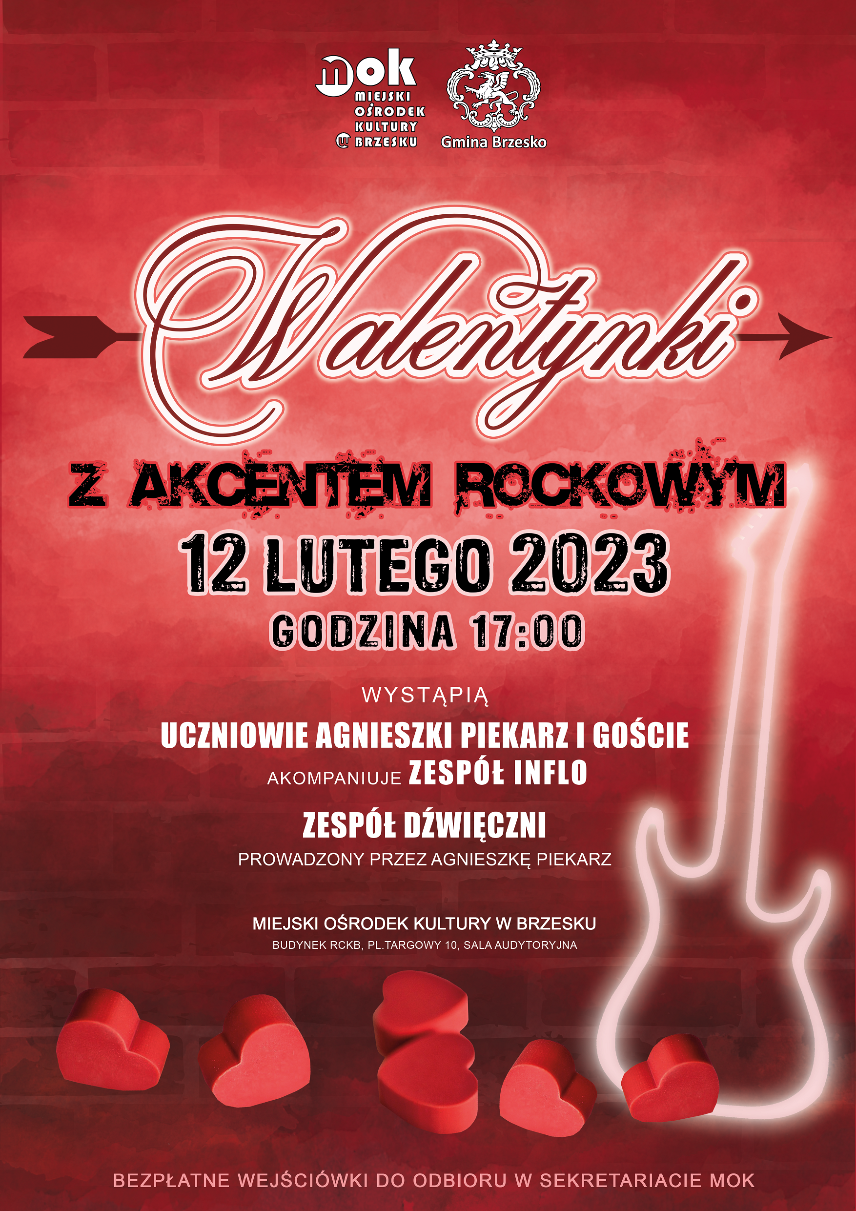 Serdecznie zapraszamy na koncert “Walentynki z akcentem rockowym”. Uczniowie Agnieszki Piekarz zaprezentują się w nieco ostrzejszym, choć dalej romantycznym klimacie.