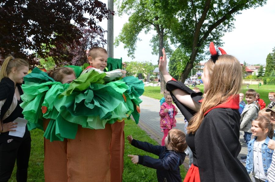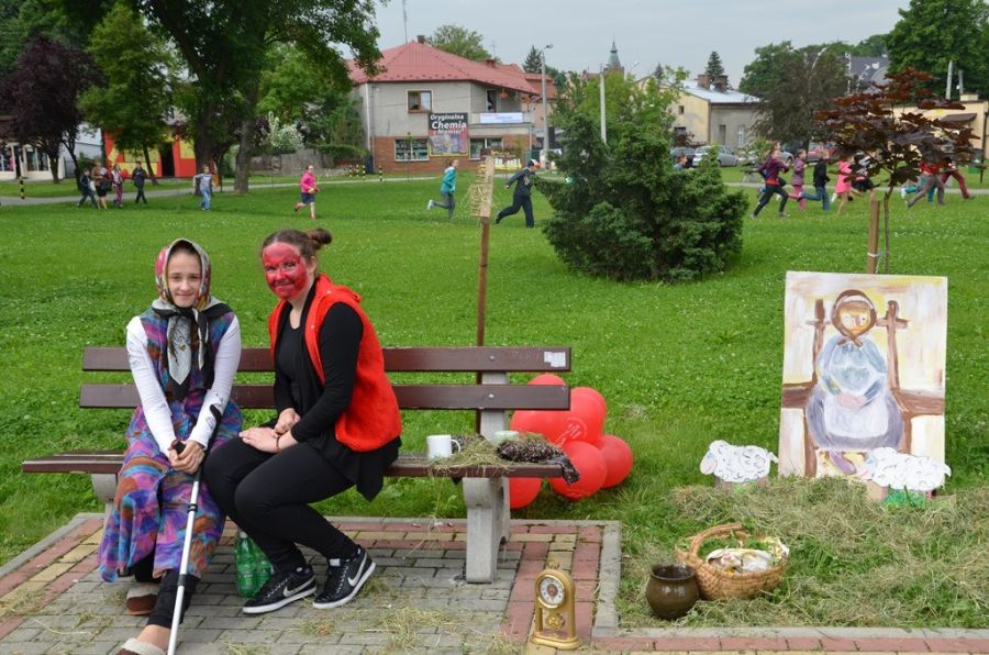 Jak na teatr uliczny przystało wszystkie elementy były lekkie i łatwe do przeniesienia. Małe grupy teatralne umiejscowiły się na ławkach i pośród drzew nieopodal parku jordanowskiego czekając na przechodniów i uczniów zaproszonych z brzeskich szkół podstawowych. Punktualnie o godzinie 10 przybyły pierwsze zaproszone klasy więc rozpoczęło się prezentowanie legend. Również wielu przechodniów mogło poznać legendy naszego regionu.