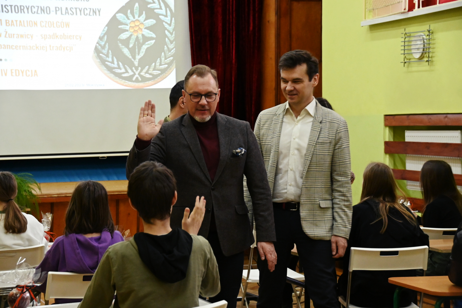 We wtorek 21 lutego br. w Szkole Podstawowej w Mokrzyskach odbył się II etap Międzyszkolnego Konkursu Historyczno-Plastycznego pod hasłem „1 Batalion Czołgów w Żurawicy – spadkobiercy pancerniackiej tradycji”. Jest to już czwarta edycja konkursu, w którym uczestniczą uczniowie szkół podstawowych w Mokrzyskach i Żurawicy. Jego organizatorami są dyrektorzy obu placówek oraz dowództwo batalionu, a patronat nad nim sprawują burmistrz Brzeska Tomasz Latocha i wójt gminy Żurawica Tomasz Szeleszczuk.