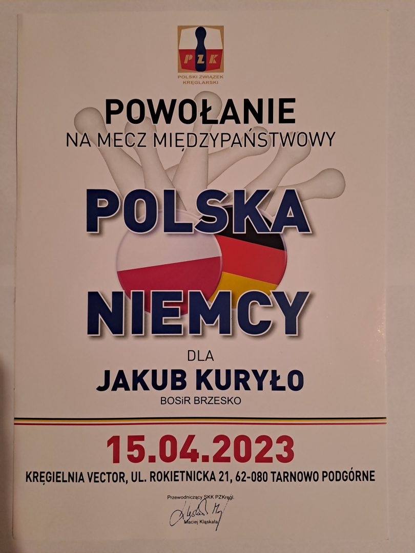 Bardzo udany sezon zalicza także Jakub Kuryło, który należał do czołowych graczy w męskiej Superlidze. W cyklu Grand Prix Seniorów zajmuje aktualnie drugie miejsce, nadal mając szansę na końcowy triumf w tych rozgrywkach. W styczniu został powołany do szerokiej kadry seniorów, która przygotowuje się do Drużynowych Mistrzostw Świata mających się odbyć w maju w Varazdin (Chorwacja). Najbardziej utytułowany brzeski kręglarz będzie miał okazję udowodnić zasadność tego powołania w najbliższą sobotę, 15 kwietnia, podczas międzypaństwowego meczu Polska – Niemcy, który zostanie rozegrany w Tarnowie Podgórnym.
