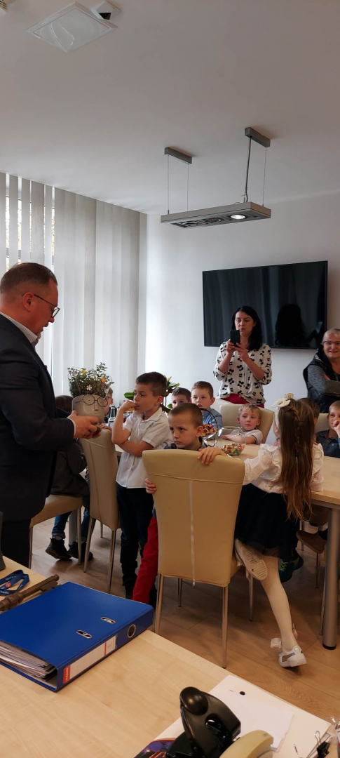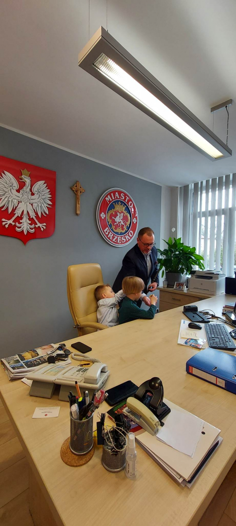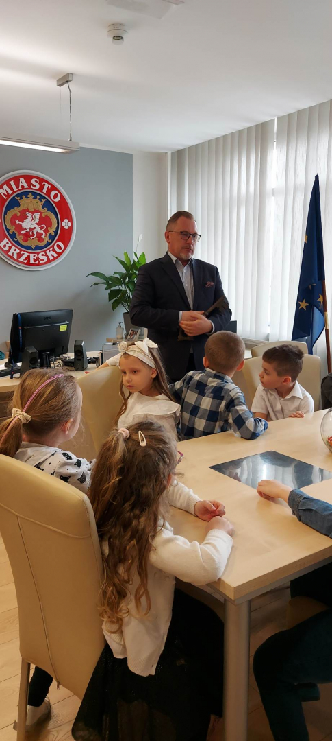 Niespodziewaną wizytę złożyły burmistrzowi Brzeska dzieci z Publicznego Przedszkola nr 7 w Brzesku. Była to grupa starszaków pod opieką Moniki Pstrąg. Odwiedziny związane były z przypadającym na 22 kwietnia Światowym Dniem Ziemi, któremu w tym roku przyświeca hasło „Ziemia na krawędzi”. Z tego właśnie powodu luźna rozmowa, która wywiązała się pomiędzy Tomaszem Latochą a przedszkolakami, dotyczyła ekologii, dbałości o ziemię i własne zdrowie. Burmistrz otrzymał od swoich gości nawiązujące do wydarzenia upominki – sadzonkę wiśni japońskiej i doniczkę z żywą rośliną, która od tej pory zdobi jego biurko. Gospodarz zrewanżował się słodyczami, oczywiście w rozsądnych ilościach. Dzieci chętnie wypytywały burmistrza o specyfikę jego pracy, chłonąc każdą otrzymaną informację.