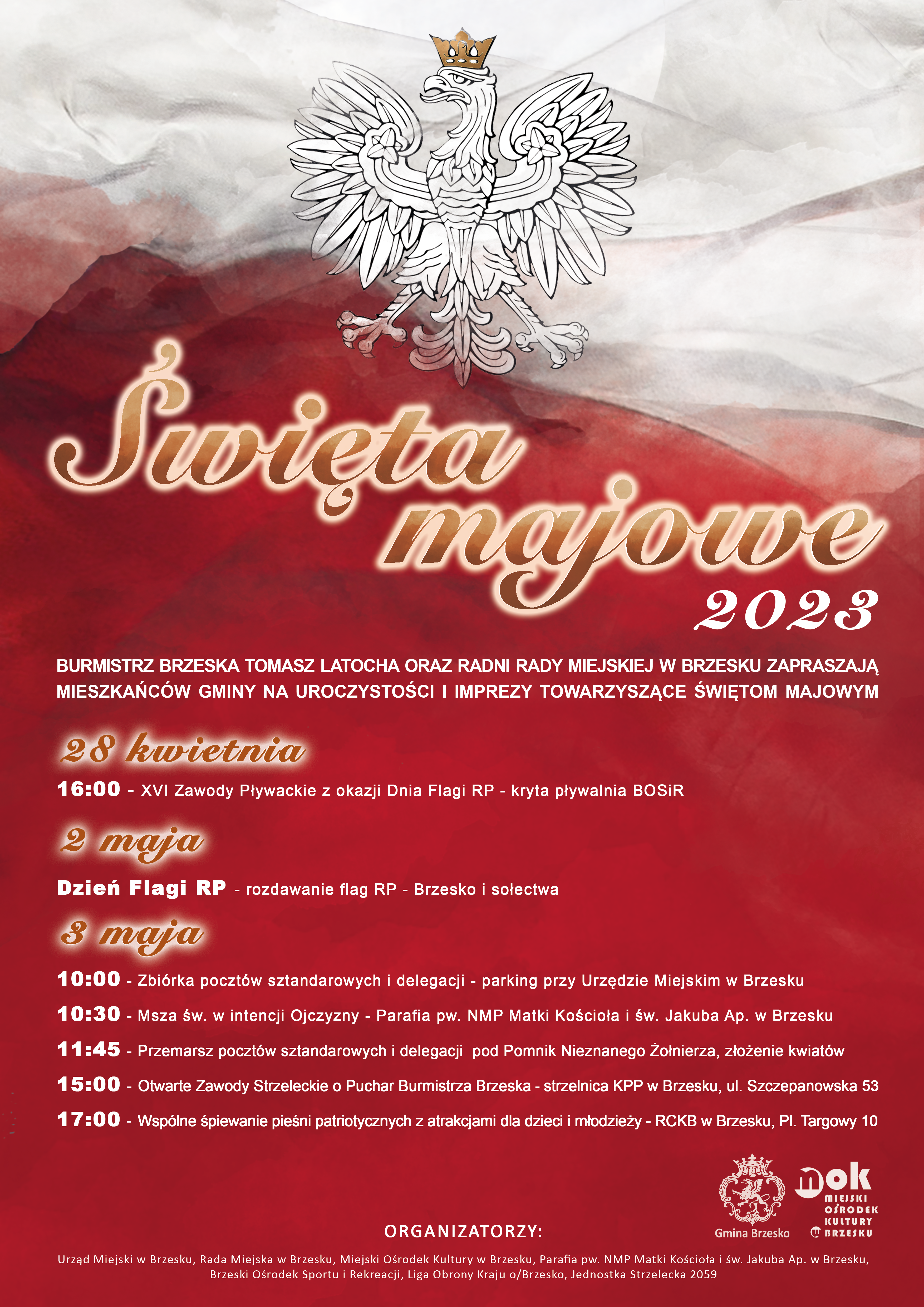 zapraszają mieszkańców na uroczystości i imprezy towarzyszące świętom majowym.