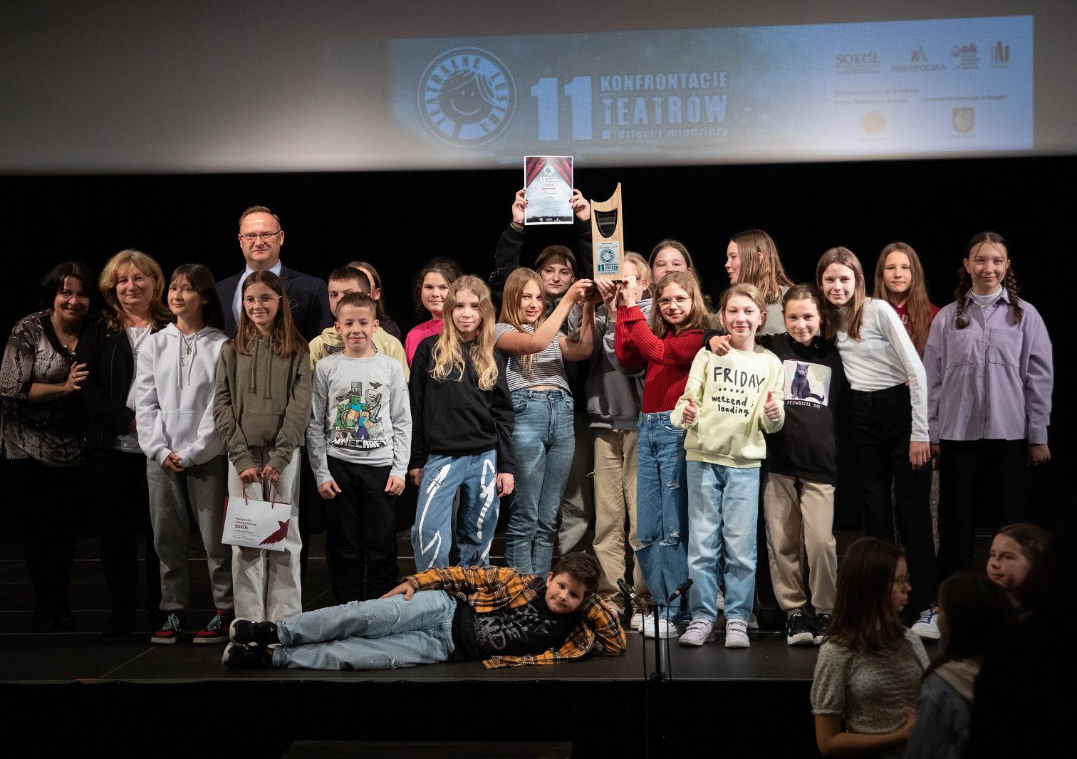Grupa teatralna STONOGA z Zespołu Szkolno-Przedszkolnego w Brzesku sięgnęła po najważniejszą nagrodę 11. Konfrontacji Teatrów Dzieci i Młodzieży TEATRALNE LUSTRA. Grupa prowadzona przez Agatę Podłęcką została doceniona za spektakl „Bo jak nie my, to kto?”.