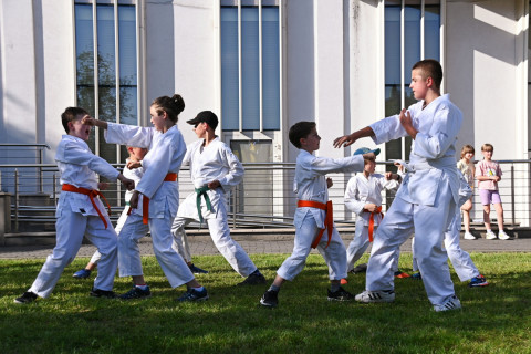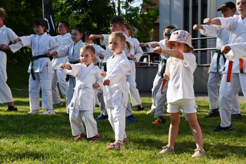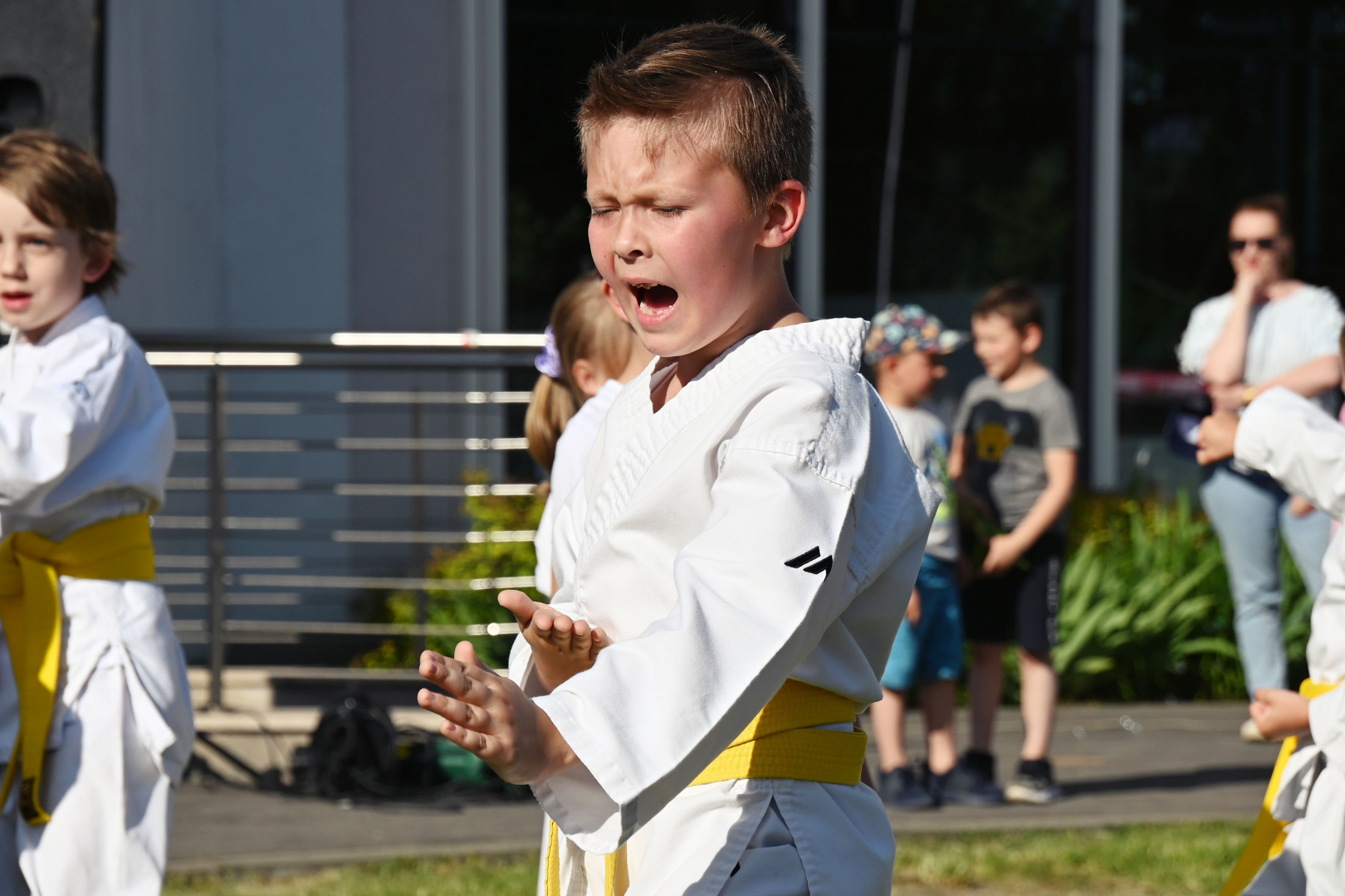 Dodatkową atrakcją był niezwykle widowiskowy pokaz sztuk walki w wykonaniu kilkudziesięcioosobowej armii małych i nieco większych wojowników zrzeszonych w QI Karate Klub. Zapierającą dech w piersiach prezentację poprowadził Konrad Irzyk, założyciel klubu i jego główny trener. Tymczasem w kameralnej scenerii, w holu RCK-B czynna była (i nadal jest) wystawa plastycznych prac wychowanków Publicznego Przedszkola nr 10 w Brzesku – pokłosie ogólnopolskiego konkursu „Sztuka selfie, czyli jak zostać dziełem sztuki” zorganizowanego przez Specjalny Ośrodek Szkolno-Wychowawczy w Olsztynie. Przy takim natłoku wydarzeń i towarzyszącym im niezmiennym zainteresowaniu decyzja o przedłużeniu czasu trwania pikniku była jak najbardziej oczywista.