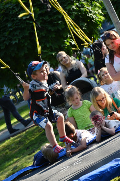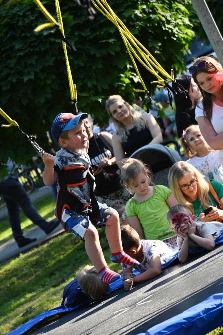 Każdy skrawek zieleni został zagospodarowany przez animatorów, którzy przygotowali na ten dzień szereg darmowych atrakcji, ufundowanych przez Urząd Miejski w Brzesku oraz sponsorów. Od rana do wieczora oblegane było gęsto zabudowane miasteczko z dmuchańcami, a do stanowiska z „kryształową” kulą ustawiały się nieprzerwanie długie kolejki. Na brak zajęć nie narzekali też szczudlarze, którzy cierpliwie instruowali wszystkich chętnych, jak bezpiecznie i sprawnie poruszać się za pomocą dwóch sprężystych przedmiotów będących przedłużeniem nóg. Wszystko odbywało się rotacyjnie, toteż każde dziecko miało wystarczająco dużo czasu, aby skorzystać ze wszystkich propozycji. W oczekiwaniu na swoją kolejkę można było odwiedzić namiot, w którym doświadczone „wizażystki” dekorowały maluchów tęczowym makijażem i brokatowymi tatuażami. Spore zainteresowanie towarzyszyło również pokazom wozów bojowych i najnowocześniejszego wyposażenia ratowniczo-gaśniczego przygotowanym przez strażaków z jednostek OSP Mokrzyska, Poręba Spytkowska i Szczepanów. Były też stanowiska z ofertami skierowanymi dla dorosłych. Przedstawicielki Studia Figura zajmowały się instruowaniem wszystkich zainteresowanych zdrowym trybem życia. Pracownice Powiatowego Centrum Pomocy Rodzinie promowały akcję, której celem jest zachęcenie do pełnienia funkcji rodziców zastępczych.