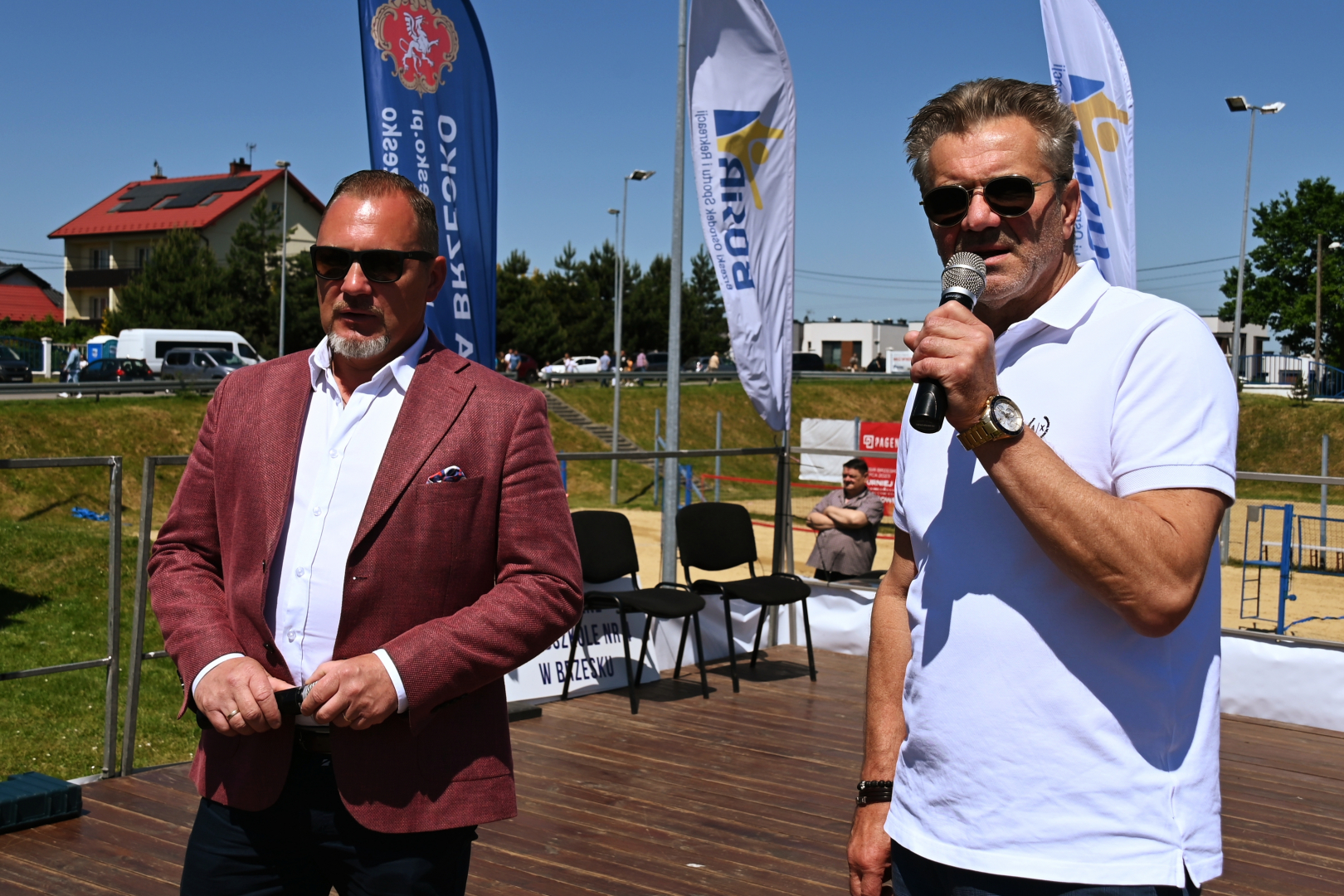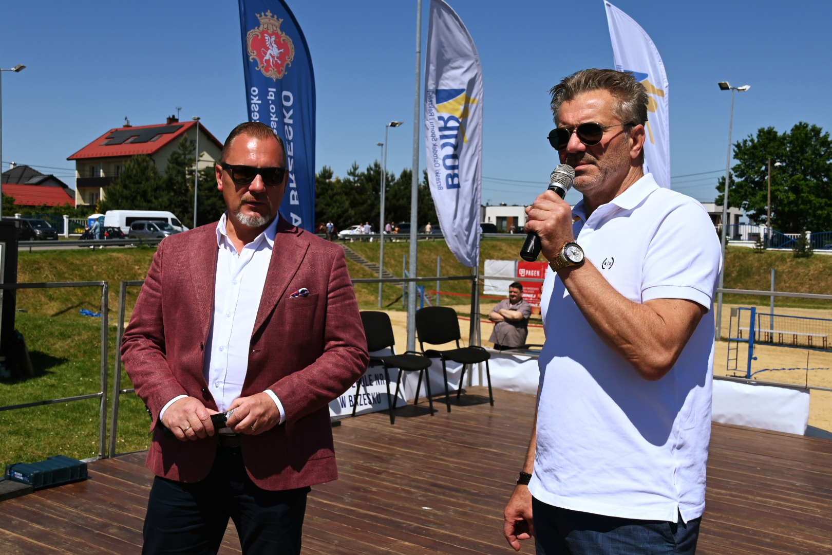 Oficjalne otwarcie pikniku miało miejsce przed południem, a dokonali go główni organizatorzy i gospodarze wydarzenia – burmistrz Brzeska Tomasz Latocha oraz dyrektor BOSiR-u Marek Dadej. Zanim to jednak nastąpiło, już dwie godziny wcześniej na obiektach sportowych ORLIK 2012 rozpoczęły się zawody w piłce nożnej i koszykówce. Uzupełnieniem sportowych atrakcji był popołudniowy pokaz sztuk walki, w którym w rolach głównych wystąpili wychowankowie Qi Karate Klubu pod kierunkiem swoich mentorów – Konrada Irzyka i Szczepana Łowińskiego. Osobne stanowisko przygotował też Okocimski Klub Tenisowy. Trenerzy wraz ze swoimi podopiecznymi zachęcali do wypróbowania swoich sił z rakieta w ręce. Zorganizowany został mini kort, na którym każdy mógł rozegrać krótki mecz, a po zakończonej partii otrzymać zaproszenie na darmowy trening na obiektach przy ulicy Świerkowej w Brzesku. Upał panujący tego dnia nikomu nie był straszny. Strażacy z OSP Brzesko skutecznie „zraszali” i chłodzili rozgrzanych uczestników pikniku na boiskach do siatkówki plażowej.