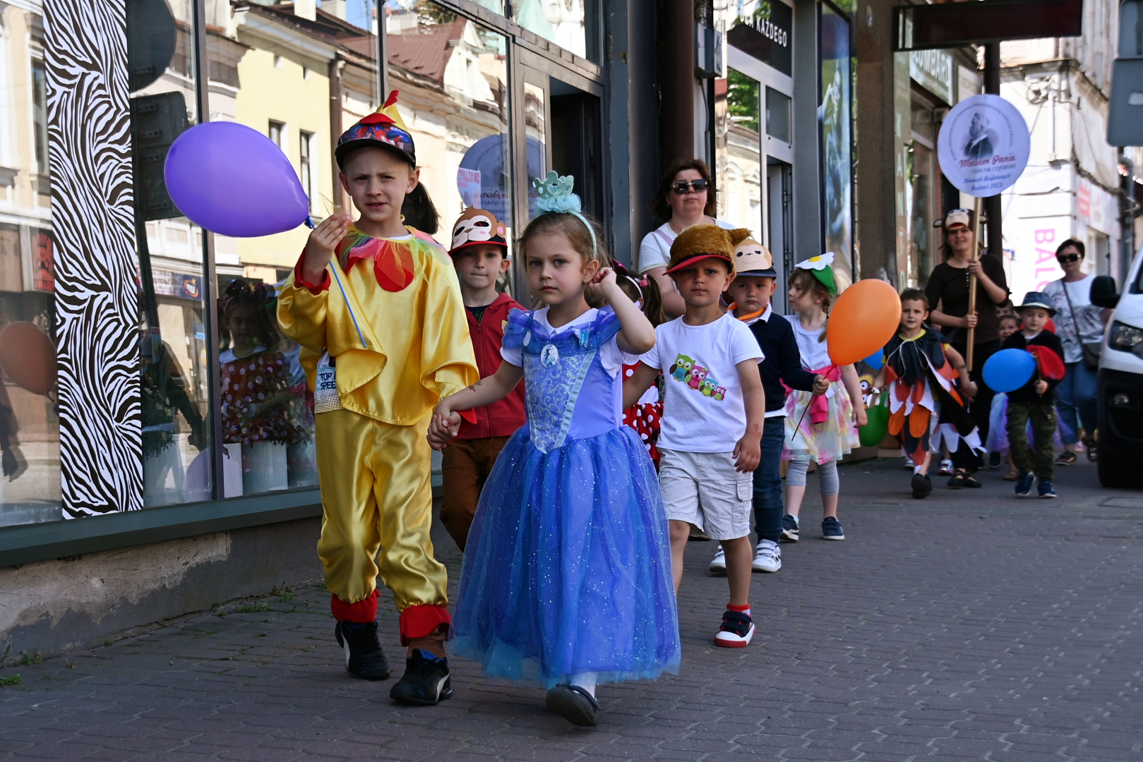 Po raz kolejny ulicami Brzeska przemaszerował „Korowód Bajkowych Postaci” zorganizowany przez Oddział dla Dzieci Powiatowej i Miejskiej Biblioteki Publicznej. W tym roku przypada 230. rocznica urodzin Aleksandra Fredry i nasza biblioteka z tej okazji realizuje projekt ministerialny, „Mocium Panie, czas na czytanie”. Korowód był jedną z części składowych tego projektu dlatego motywem przewodnim tego barwnego przemarszu były bajki i wiersze tego najwybitniejszego polskiego komediopisarza. Dzieci przebrane były w stroje inspirowane dziełami Aleksandra Fredry. Szły więc razem z nami małpki, sówki, krokodyle, motylki i inne postaci kojarzące się z jego twórczością.
