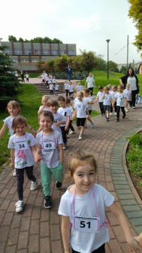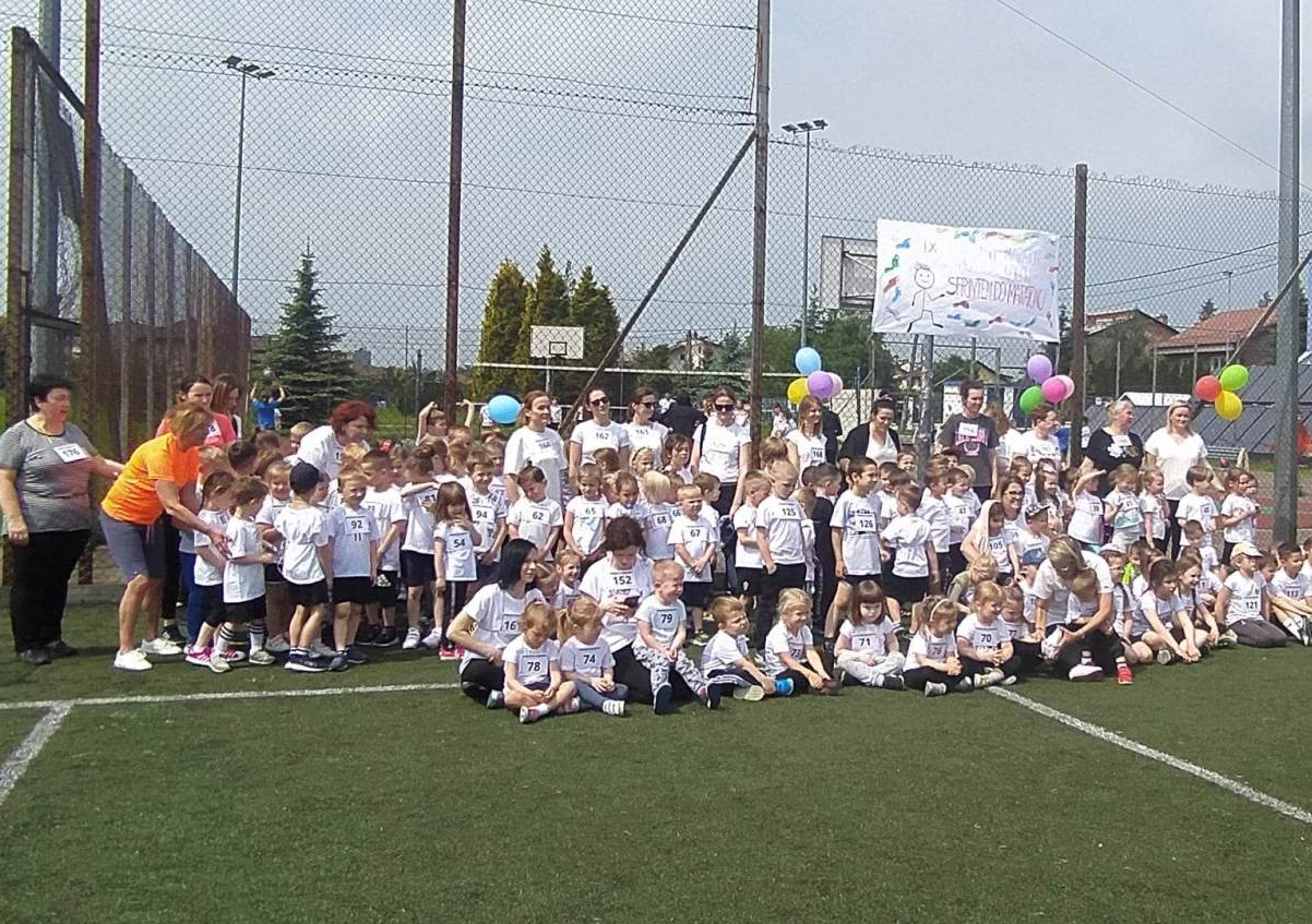 Akcja została przeprowadzona na obiektach sportowych ORLIK 2012. Na starcie stanęły nie tylko przedszkolaki, ale także dyrektor ZS-P Ewa Łupińska-Toroń, zastępca dyrektora Monika Reczek, radna miejska Barbara Borowiecka oraz przewodnicząca Rady Rodziców Katarzyna Martyka. Biegaczy zagrzewał do boju burmistrz Brzeska Tomasz Latocha, który przybył na to wydarzenie z prezentami – koszami wypełnionymi po brzegi owocami. Wszyscy razem przebieli dystans długości 32 kilometrów. Wynik wspaniały, a jednak już teraz uczestnicy tegorocznego, dziewiątego biegu, zapowiadają, że w przyszłym roku uczczą jubileusz pokonując pełny dystans olimpijskiego maratonu.