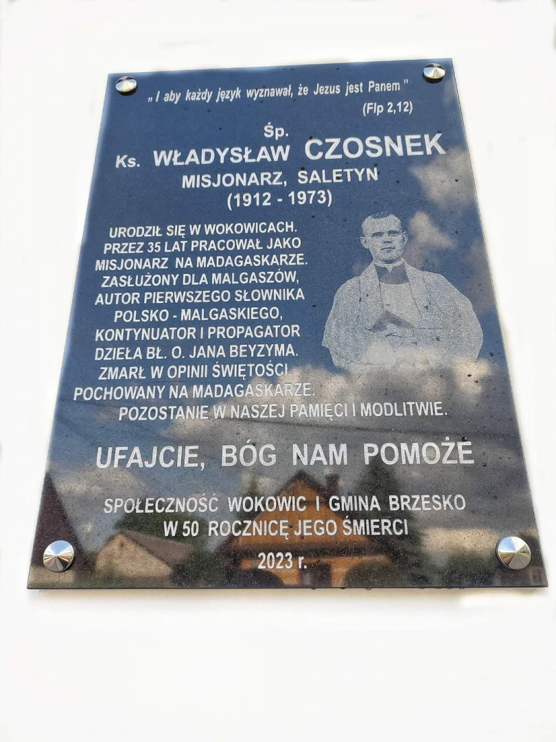 Przez trzy dni w budynku remizy OSP Wokowice czynna była wystawa poświęcona życiu i działalności pochodzącego z tej miejscowości księdza Władysława Czosnka, który większość swojej posługi duszpasterskiej spędził jako misjonarz na Madagaskarze, gdzie zmarł 50 lat temu. Za to na stałe, na ścianie sąsiadującego ze strażnicą budynku wmurowana została tablica upamiętniająca postać kapłana. Wystawa została oficjalnie otwarta 11 czerwca br. Uroczystość poprzedziła msza święta odprawiona 11 czerwca w bazylice św. Marii Magdaleny i św. Stanisława BM w Szczepanowie. W nabożeństwie transmitowanym poprzez łącze internetowe uczestniczyli wierni z całej wspólnoty parafialnej. Mszy przewodniczył ksiądz Jan Kijek MS, wikariusz prowincjonalny księży saletynów. Uczestniczył w niej także ksiądz Bartosz Seruga MS, dyrektor Centrum Informacyjnego Misjonarzy Saletynów. Kazanie poświęcone księdzu Czosnkowi wygłosił ksiądz Łukasz Nowak MS, sekretarz prowincjonalny misjonarzy saletynów.