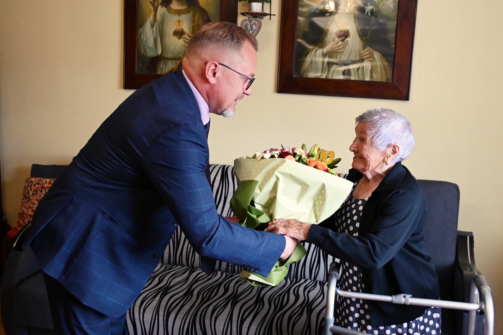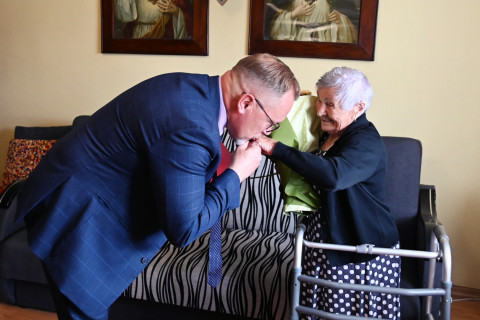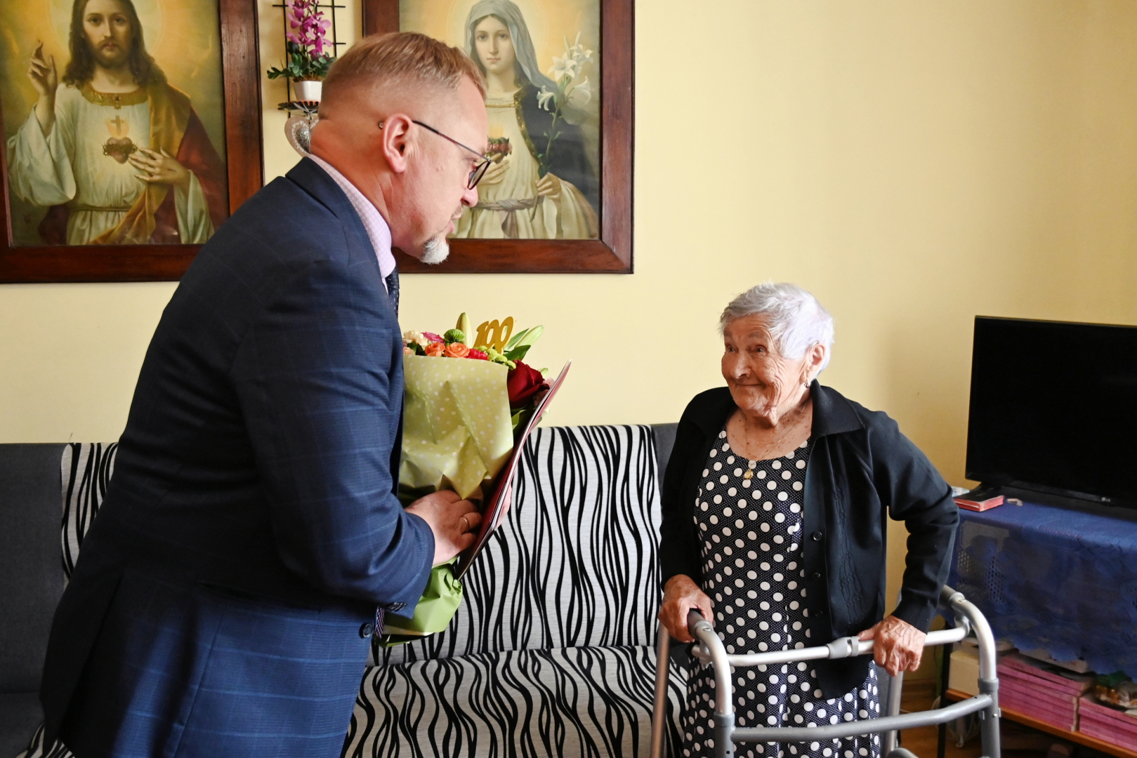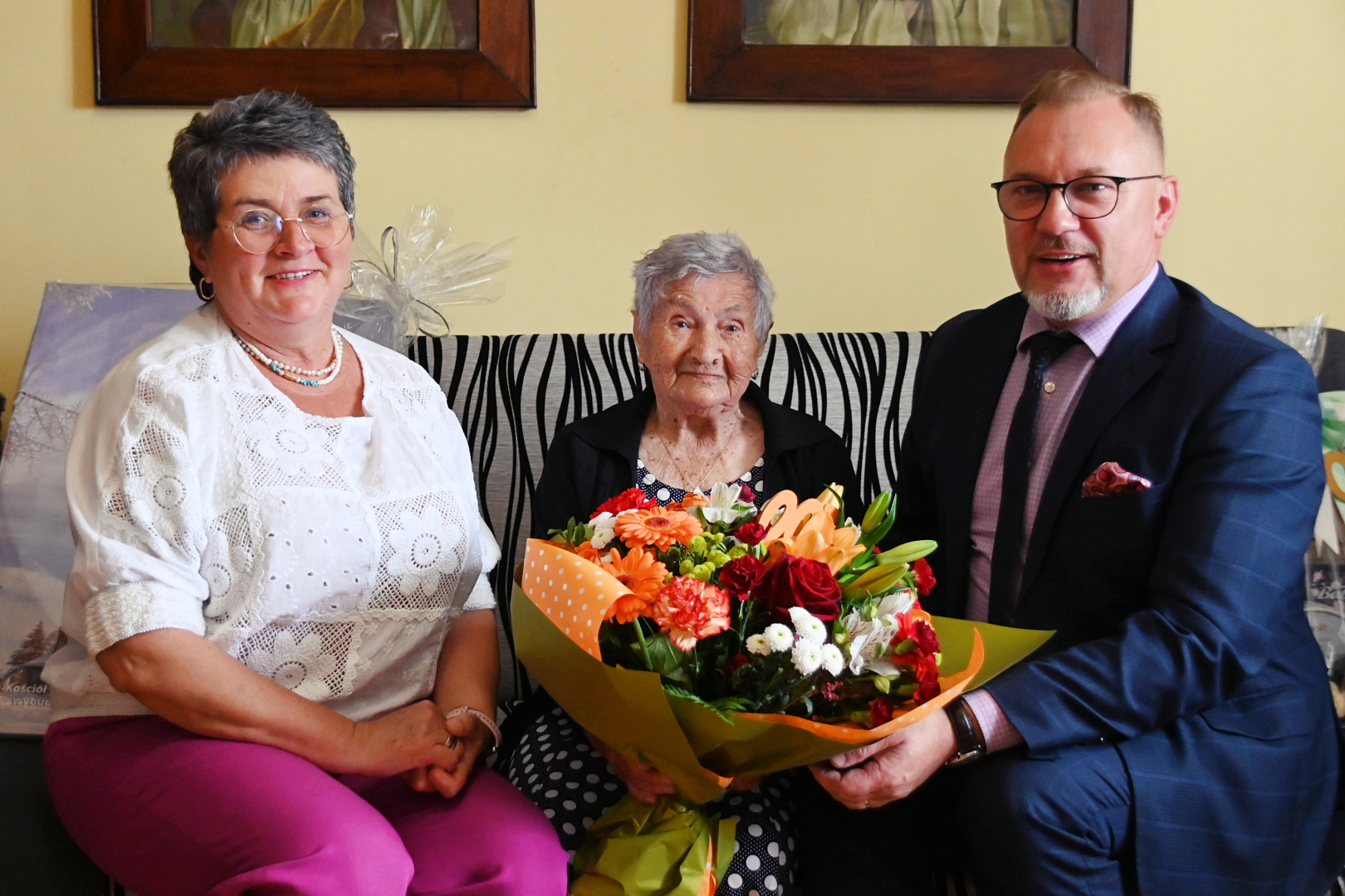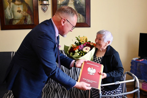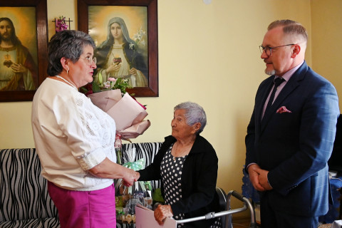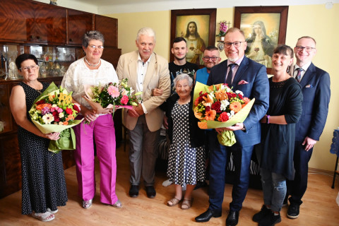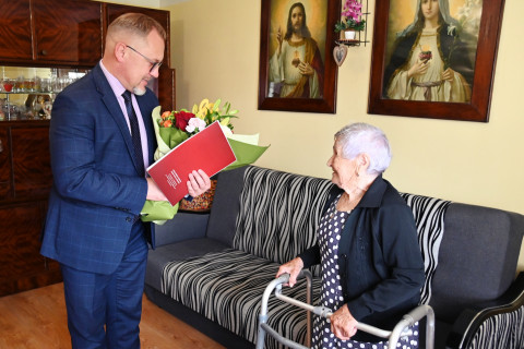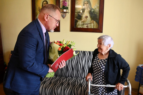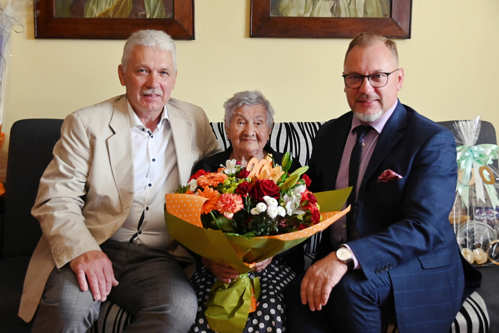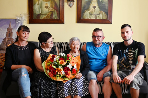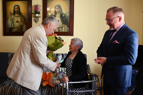 W sobotę,17 czerwca, setne urodziny obchodziła Pani Stefania Kuras, mieszkanka Okocimia. Z tej okazji jubilatkę odwiedzili burmistrz Brzeska Tomasz Latocha, zastępca kierownika Urzędu Stanu Cywilnego Jarosław Pasierb, sołtys Okocimia Beata Słupska oraz radny miejski Franciszek Brzyk. W spotkaniu uczestniczyła również najbliższa rodzina jubilatki. Stulatka otrzymała listy gratulacyjne od burmistrza, a także od Premiera RP Mateusza Morawieckiego i Wojewody Małopolskiego Łukasza Kmity. Burmistrz wręczył Pani Stefanii bukiet kwiatów oraz ufundowane przez Urząd Miejski upominki. Wszyscy goście złożyli jubilatce życzenia dalszych długich lat życia, pełnego zdrowia, szczęścia i wielu pomyślnych chwil.