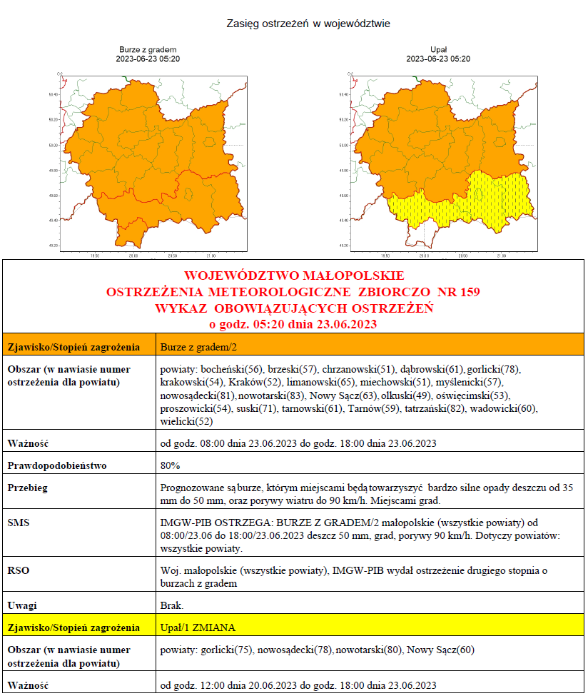 Ważność: od godz. 8:00 dnia 23.06.2023 do godz. 18:00 dnia 23.06.2023