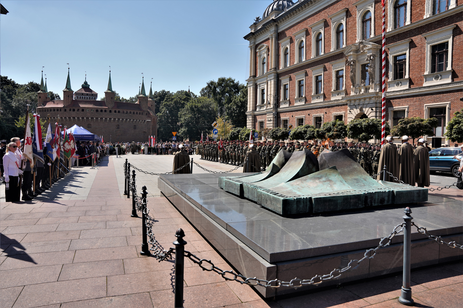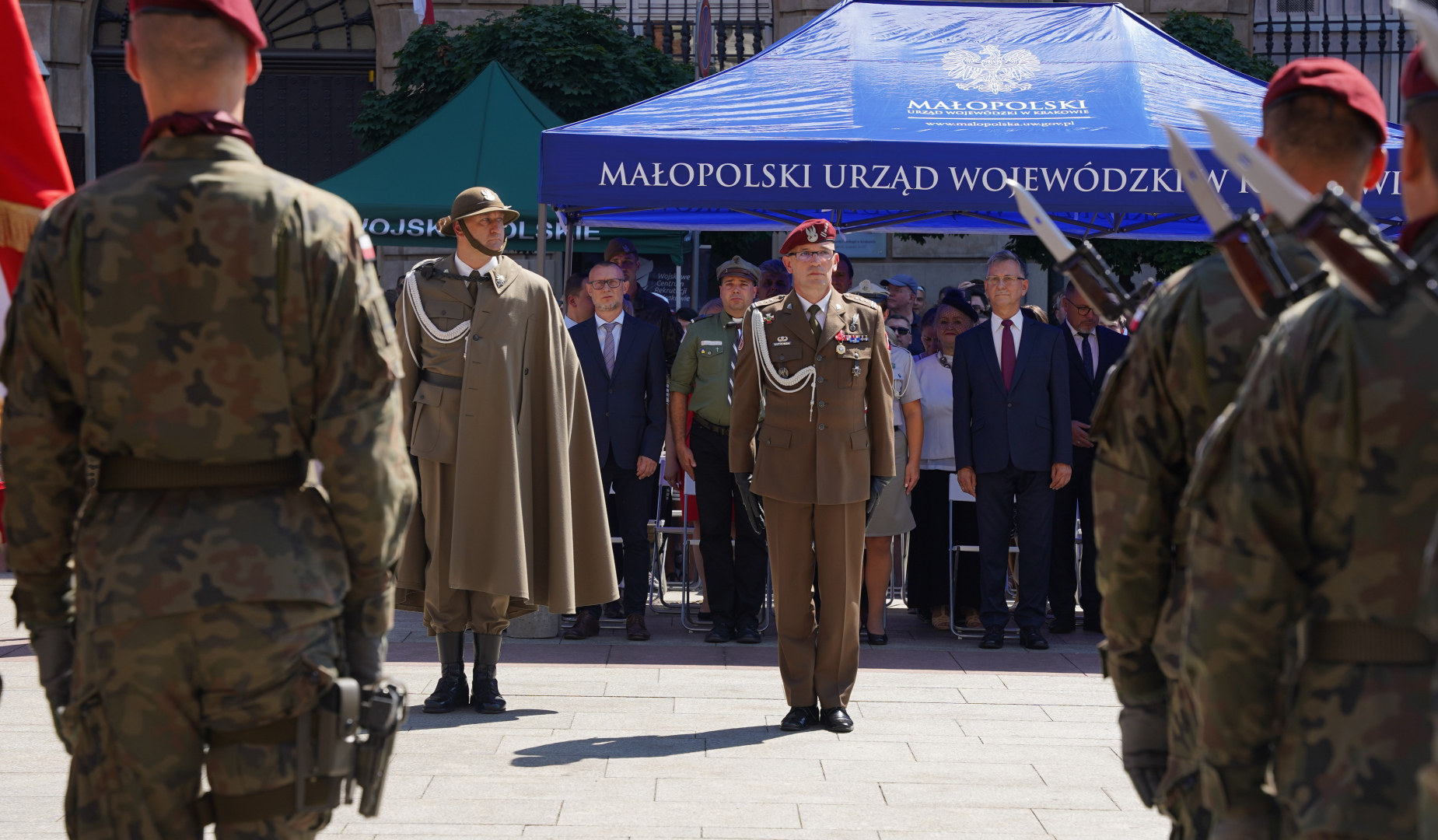 Organizatorami uroczystości, które odbyły się przed Grobem Nieznanego Żołnierza na krakowskim placu Jana Matejki byli wojewoda Łukasz Kmita, dowódca Garnizonu Kraków gen. broni Michał Strzelecki oraz dowódca Garnizonu Kraków-Balice płk pil. Sławomir Byliniak. Uczestniczyli w nich także parlamentarzyści, przedstawiciele władz samorządowych województwa małopolskiego i miasta Krakowa, szeregu instytucji, konsulowie generalni i honorowi, przedstawiciele służb mundurowych oraz Wojska. Całość zainaugurowała msza święta w katedrze na Wawelu, której przewodniczył ks. prof. dr hab. Robert Tyrała. Po nabożeństwie, już na placu Matejki, uroczyście podniesiona została na maszt flaga państwowa, odśpiewano wspólnie hymn Polski, odczytano Apel Pamięci, po którym oddana została salwa honorowa. Na koniec delegacje złożyły wieńce i kwiaty, a chór z towarzyszeniem orkiestry odśpiewał „Pieśń Reprezentacyjną Wojska Polskiego”.