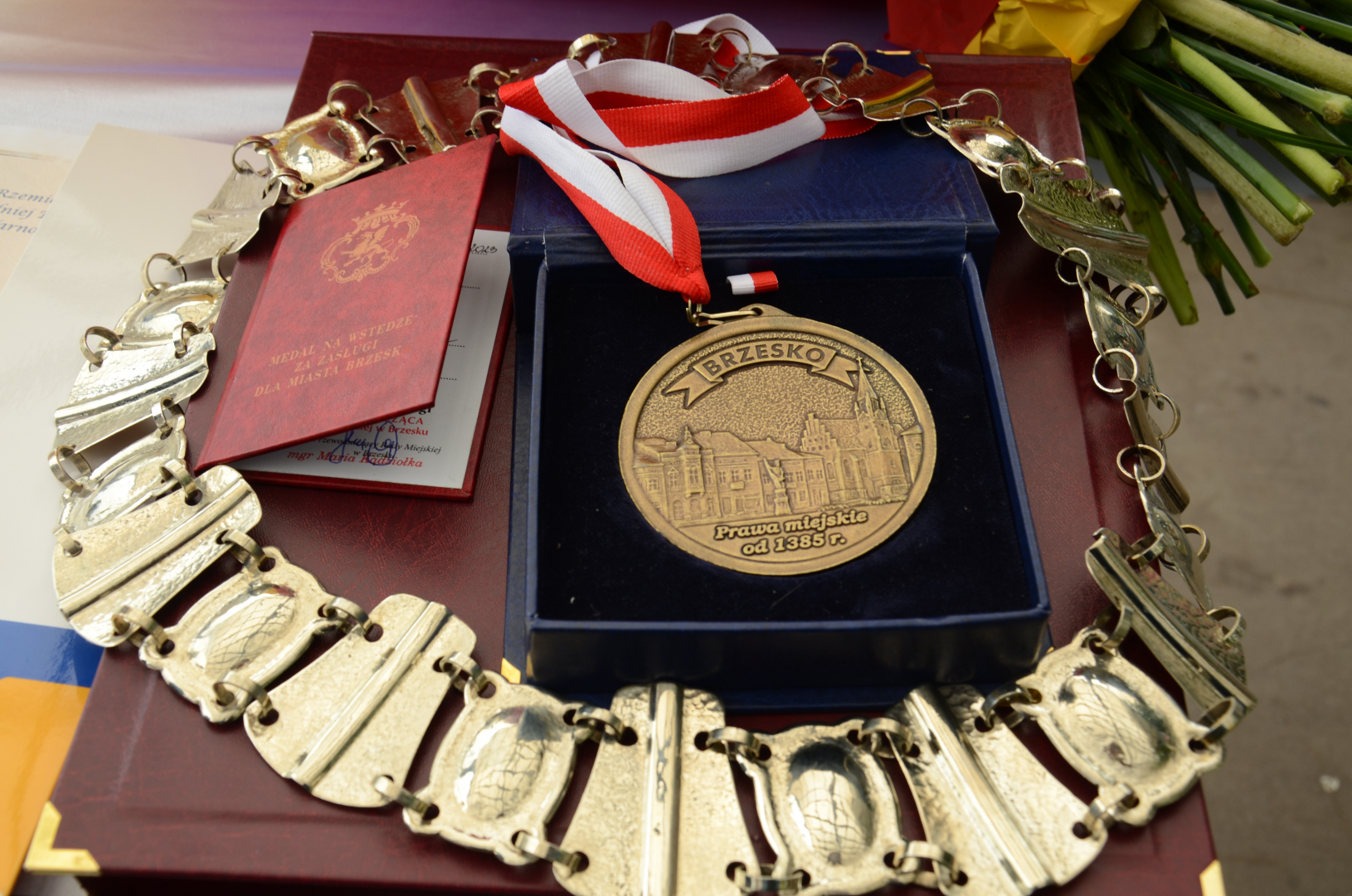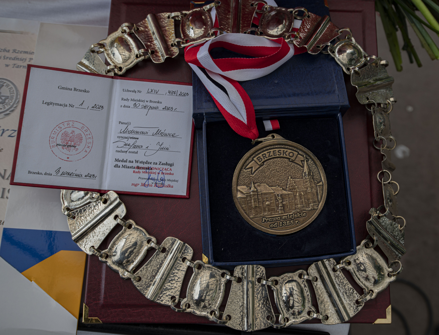 Miłym akcentem było udekorowanie brzeskiego przedsiębiorcy, Michała Mrówki Medalem na Wstędze za Zasługi dla Miasta Brzeska. W imieniu brzeskich władz samorządowych odznaczenie i akt nadania tego zaszczytnego tytułu wręczyli przewodnicząca Rady Miejskiej Maria Kądziołka oraz burmistrz Tomasz Latocha.