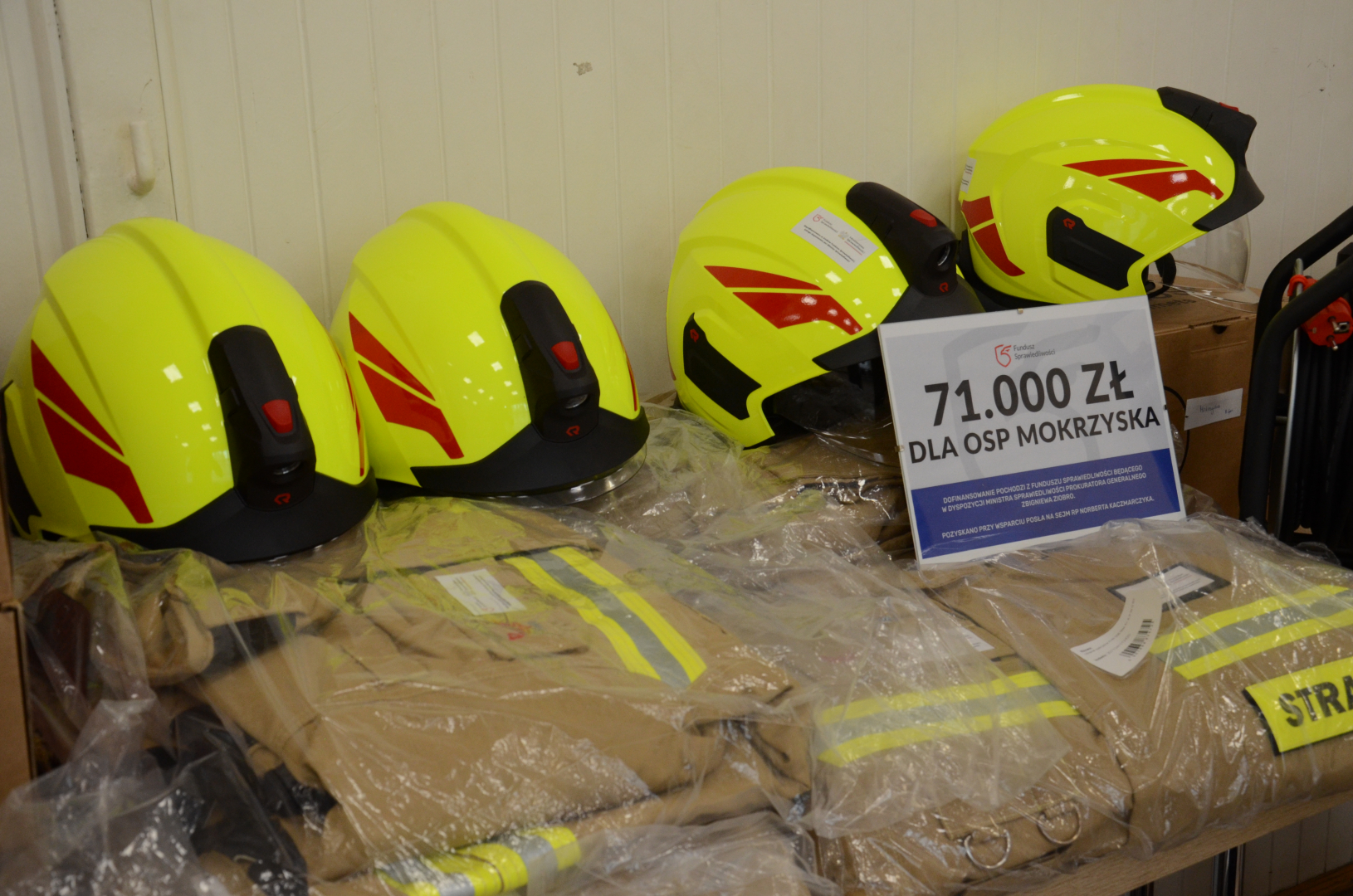 W siedzibie Gminnego Ośrodka Sportu i Rekreacji w Mokrzyskach miało miejsce oficjalne przekazanie sprzętu i wyposażenia ratowniczego dla działającej w tej miejscowości jednostki Ochotniczej Straży Pożarnej. Mundury i specjalistyczne urządzenia zostały zakupione dzięki dofinansowaniu, które Urząd Miejski pozyskał z Funduszu Sprawiedliwości.