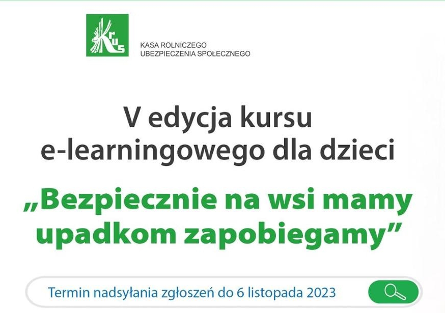 Po raz piąty Kasa Rolniczego Ubezpieczenia Społecznego zaprasza dzieci rolników do udziału w kursie e-learningowym pt. „Bezpiecznie na wsi mamy – upadkom zapobiegamy”.
