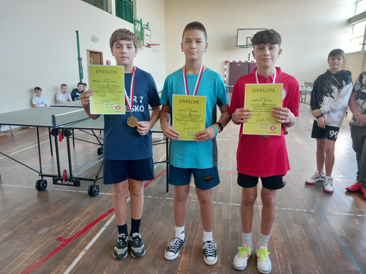 Liczniejszą obsadę miał turniej indywidualny chłopców, w którym wystartowało 15 pingpongistów reprezentujących sześć szkół podstawowych. Zwyciężył Adam Machowski (ZS-P Brzesko), który wyprzedził kolejno Wiktora Święcha (SP Poręba Spytkowska), Wiktora Zacharę (SP Bucze), Wiktora Multana (SP 3 Brzesko), Alana Zdanowskiego (SP Bucze) i Wojciecha Handzlika (ZS-P Brzesko). Cała szóstka wywalczyła awans do eliminacji powiatowych.