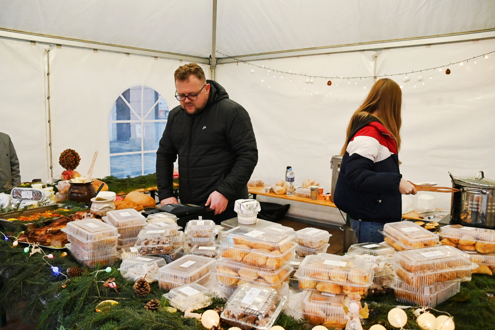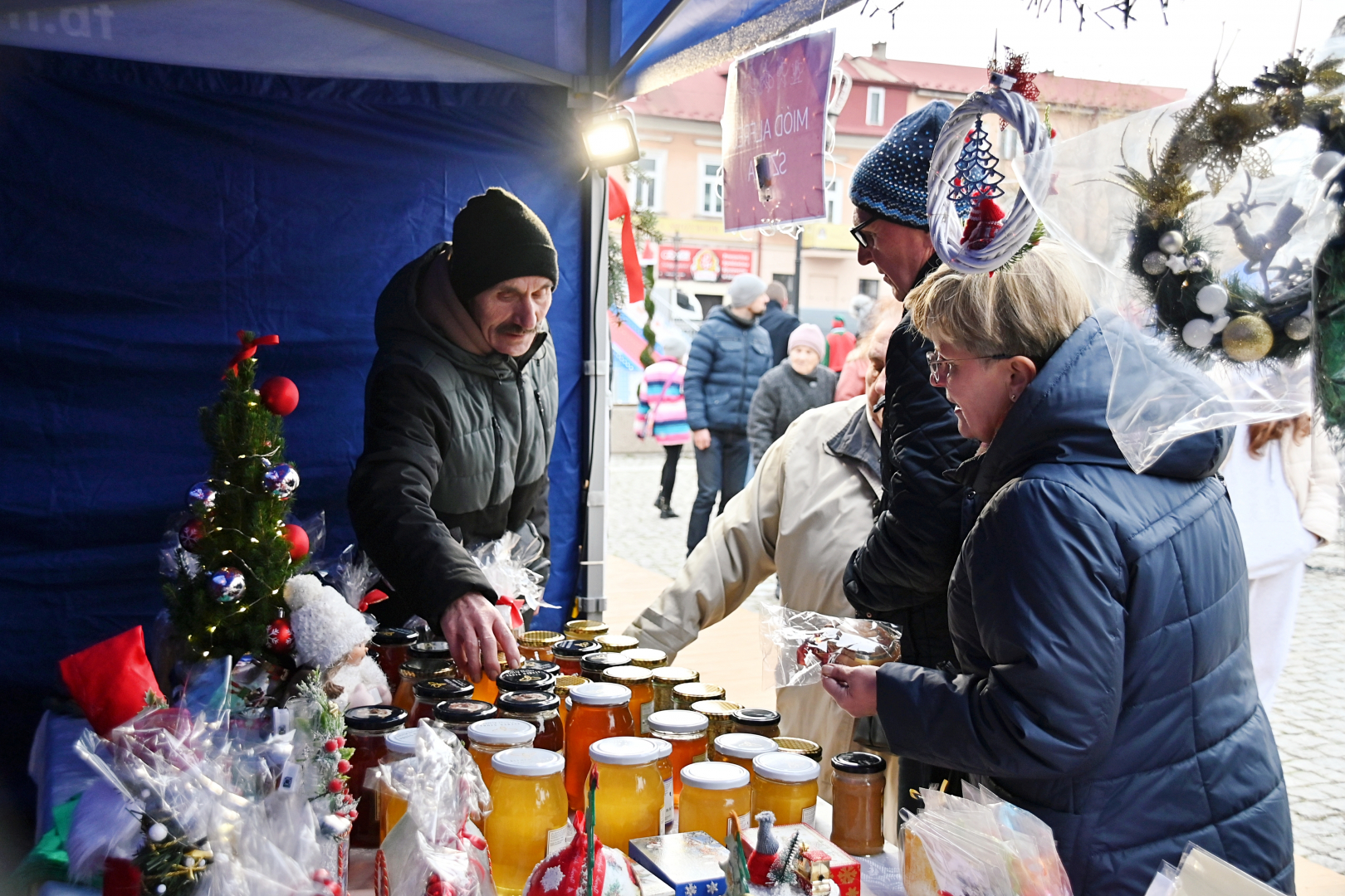 Jarmarczne stragany zostały otwarte w samo sobotnie południe. Ich oferta była niezwykle bogata. Koła Gospodyń Wiejskich, restauratorzy i lokalni przedsiębiorcy w swojej ofercie przygotowali obfity wybór świątecznych przysmaków, tradycyjnych potraw wigilijnych, choinkowych ozdób, rękodzieła, zabawek, słodyczy i miodów. Przez dwa dni czynna była też polowa restauracja i grill.