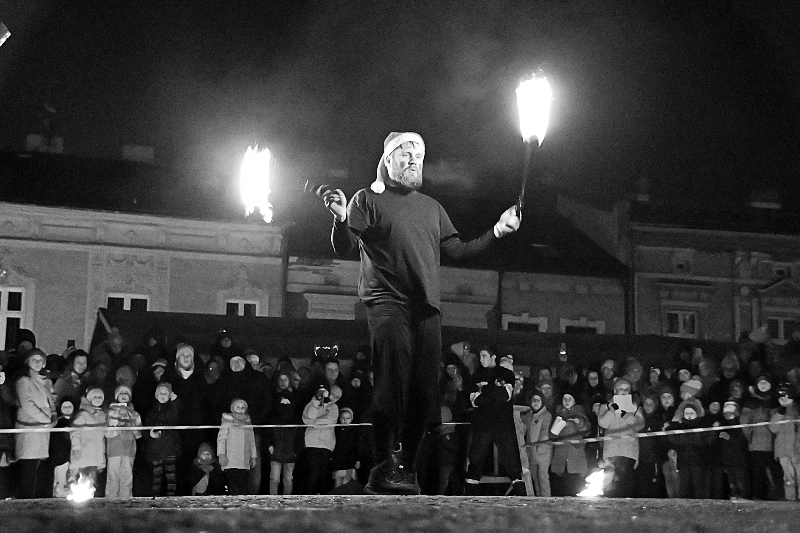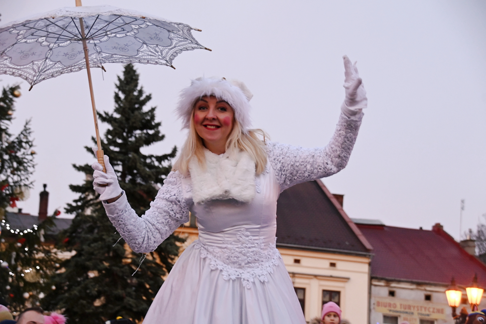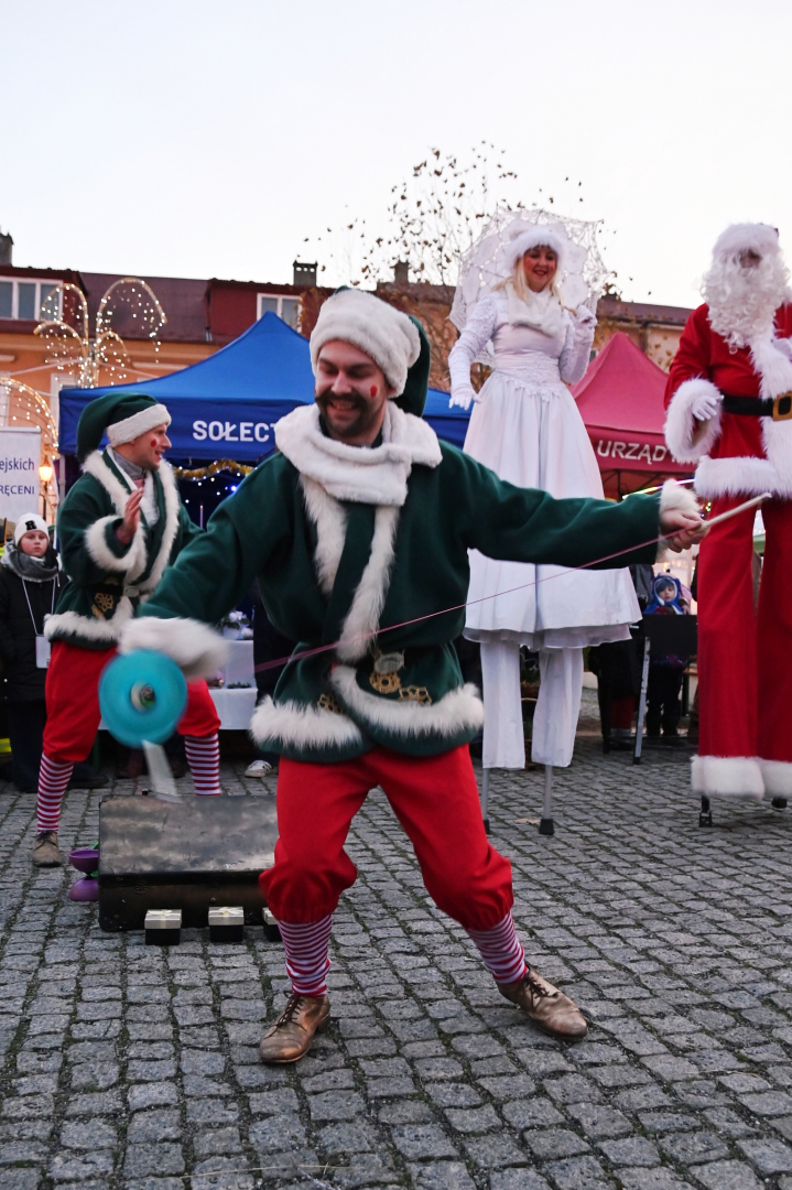 Program jarmarcznej niedzieli był niezwykle atrakcyjny, a ułożony został tak, aby zaspokoić wszystkie wiekowe generacje, co zachęcało do rodzinnych spacerów po brzeskim Rynku. W Szopce Bożonarodzeniowej zagościły prawdziwe zwierzęta, które cierpliwie pozowały do zdjęć, na których rodzice utrwalali swoje pociechy. Zagroda Świętego Mikołaja i Snow Tubing to nowe propozycje przygotowane przez organizatorów Jarmarku. Obie okazały się strzałem w dziesiątkę i świetnie zastąpiły „nieobecną” w tym roku wenecką karuzelę. Zagroda oblegana była szczelnie ze wszystkich stron. Każde dziecko chciało się sfotografować w prawdziwych mikołajowych saniach w towarzystwie samego Świętego Mikołaja na tle leniwie spacerujących reniferów. Do Snow Tubingu ustawiały się nieprzerwanie długi kolejki, bo jest to urządzenie, które świetnie funkcjonuje niezależnie od pogody. Niedzielne popołudnie wypełniły sprawdzone już przed rokiem punkty programu. Energiczny FLASHMOB przygotowany przez tancerzy skupionych wokół KRAMER DANCE STUDIO podziwiały tłumy poruszających się w rytm muzyki widzów. Szczudlarze, żonglerzy i akrobaci, elfy, Mikołaj i księżniczka, czyli członkowie teatru ulicznego LOCOMOTORA, ponownie oczarowali brzeską publiczność. Już po zapadnięciu zmroku ta sama grupa, w innych już kostiumach, lecz w tej samej bożonarodzeniowej scenerii, zaprezentowała zapierający dech w piersiach pokaz ogniowo-pirotechniczny. To był, jak zapisano w programie, WIELKI FINAŁ. Owszem, było to na pewno zakończenie wydarzeń będących ozdobą tegorocznego jarmarku, bo ten trwał jeszcze na dobre przez kilka następnych godzin.