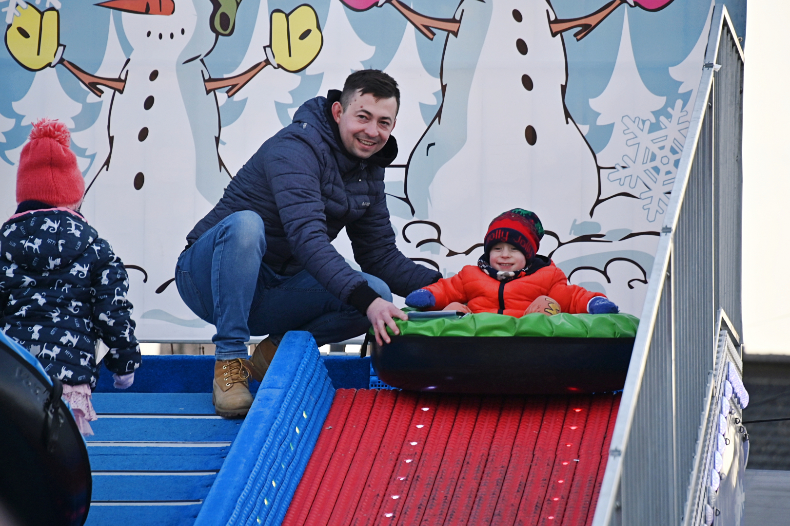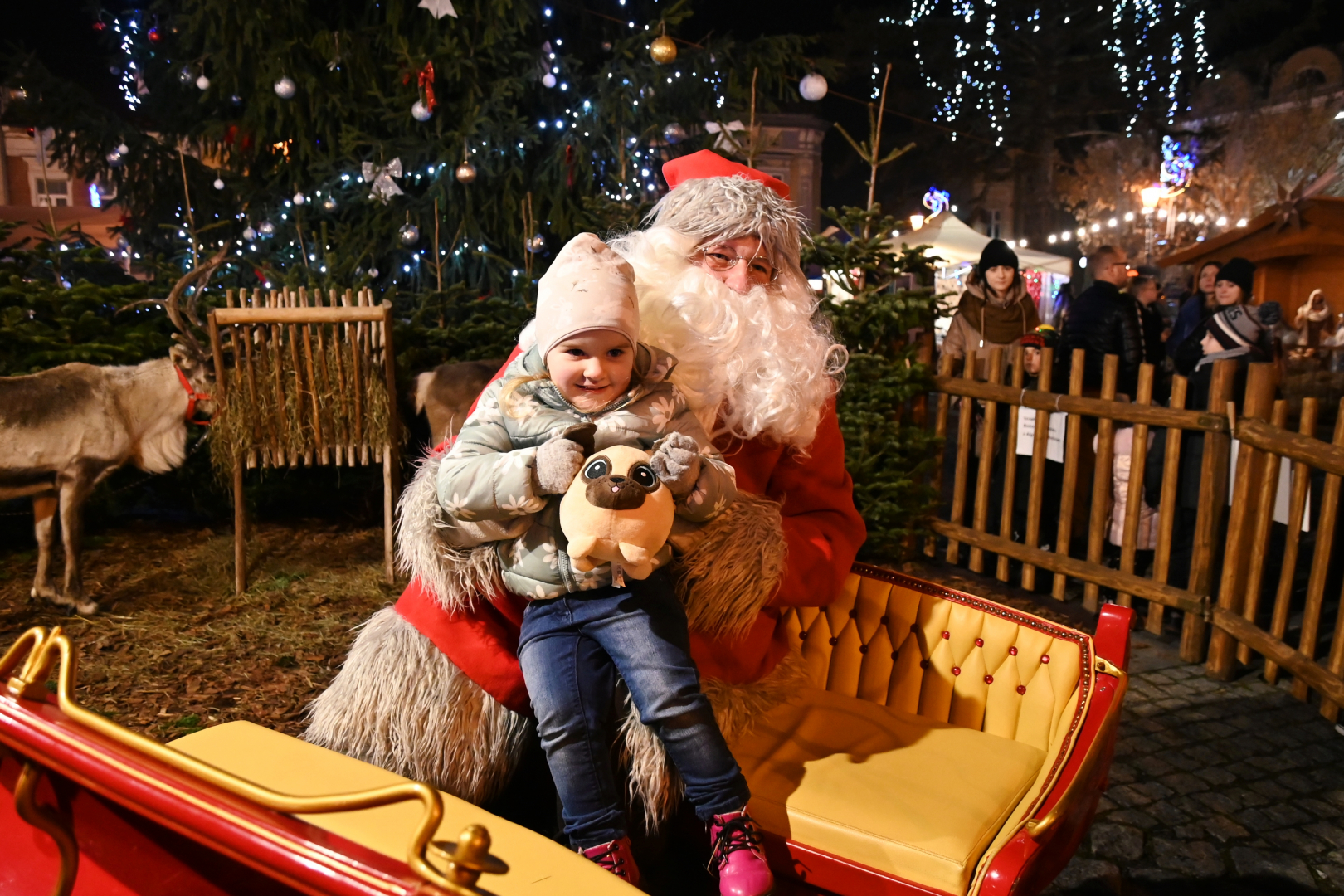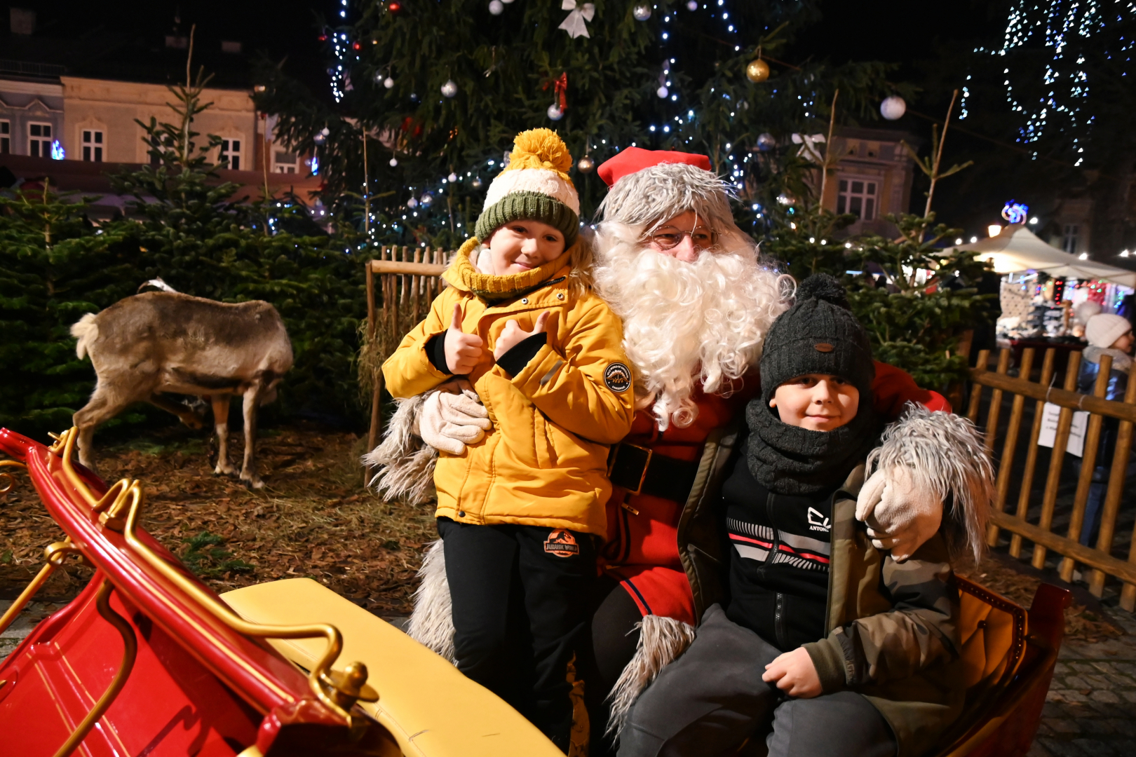 Program jarmarcznej niedzieli był niezwykle atrakcyjny, a ułożony został tak, aby zaspokoić wszystkie wiekowe generacje, co zachęcało do rodzinnych spacerów po brzeskim Rynku. W Szopce Bożonarodzeniowej zagościły prawdziwe zwierzęta, które cierpliwie pozowały do zdjęć, na których rodzice utrwalali swoje pociechy. Zagroda Świętego Mikołaja i Snow Tubing to nowe propozycje przygotowane przez organizatorów Jarmarku. Obie okazały się strzałem w dziesiątkę i świetnie zastąpiły „nieobecną” w tym roku wenecką karuzelę. Zagroda oblegana była szczelnie ze wszystkich stron. Każde dziecko chciało się sfotografować w prawdziwych mikołajowych saniach w towarzystwie samego Świętego Mikołaja na tle leniwie spacerujących reniferów. Do Snow Tubingu ustawiały się nieprzerwanie długi kolejki, bo jest to urządzenie, które świetnie funkcjonuje niezależnie od pogody. Niedzielne popołudnie wypełniły sprawdzone już przed rokiem punkty programu. Energiczny FLASHMOB przygotowany przez tancerzy skupionych wokół KRAMER DANCE STUDIO podziwiały tłumy poruszających się w rytm muzyki widzów. Szczudlarze, żonglerzy i akrobaci, elfy, Mikołaj i księżniczka, czyli członkowie teatru ulicznego LOCOMOTORA, ponownie oczarowali brzeską publiczność. Już po zapadnięciu zmroku ta sama grupa, w innych już kostiumach, lecz w tej samej bożonarodzeniowej scenerii, zaprezentowała zapierający dech w piersiach pokaz ogniowo-pirotechniczny. To był, jak zapisano w programie, WIELKI FINAŁ. Owszem, było to na pewno zakończenie wydarzeń będących ozdobą tegorocznego jarmarku, bo ten trwał jeszcze na dobre przez kilka następnych godzin.