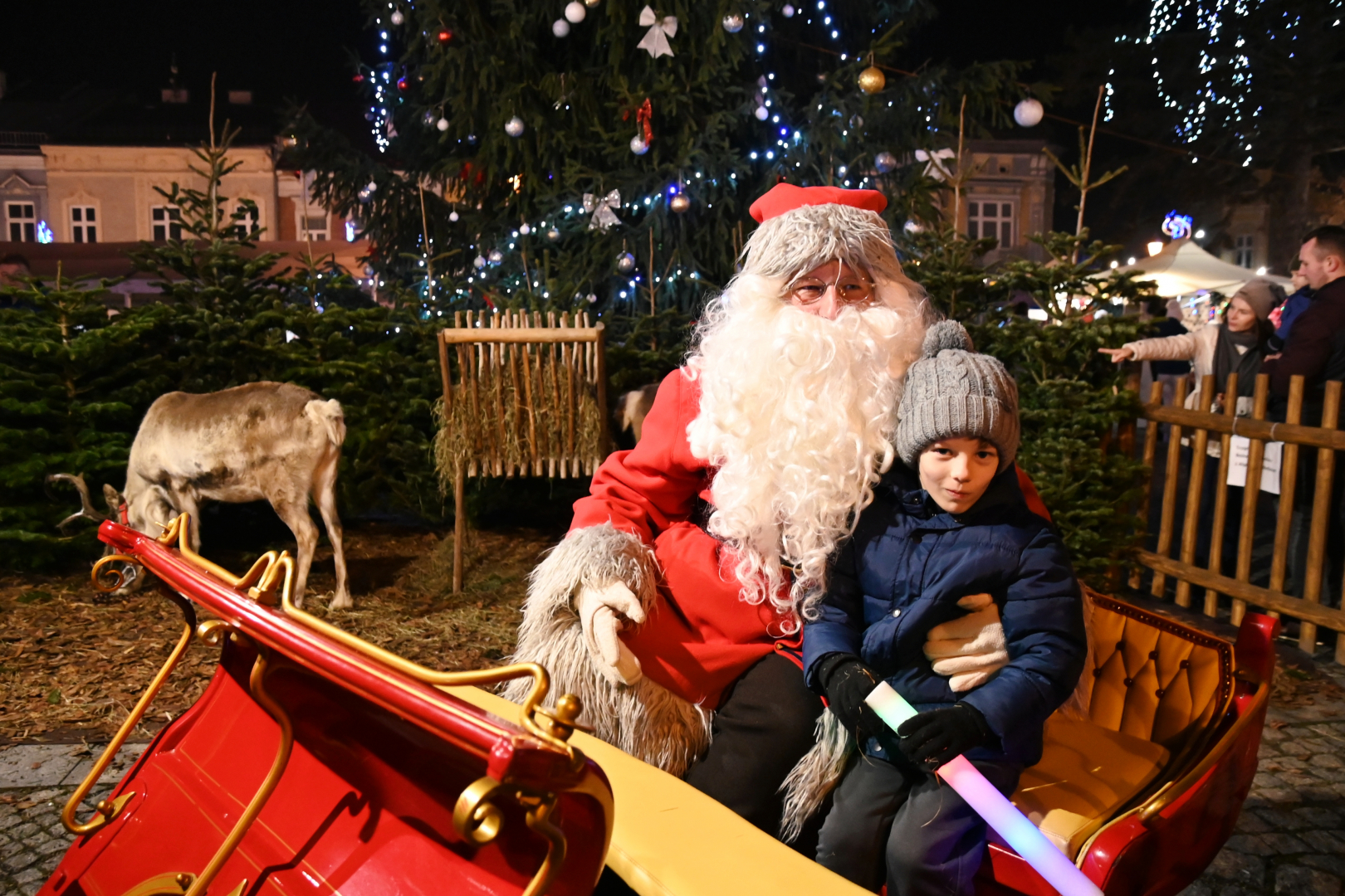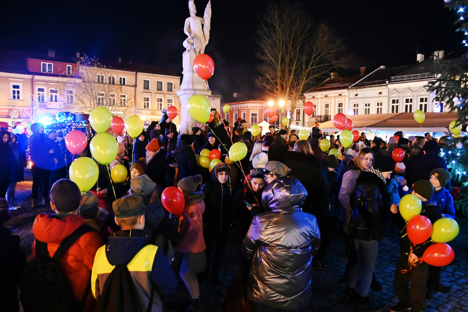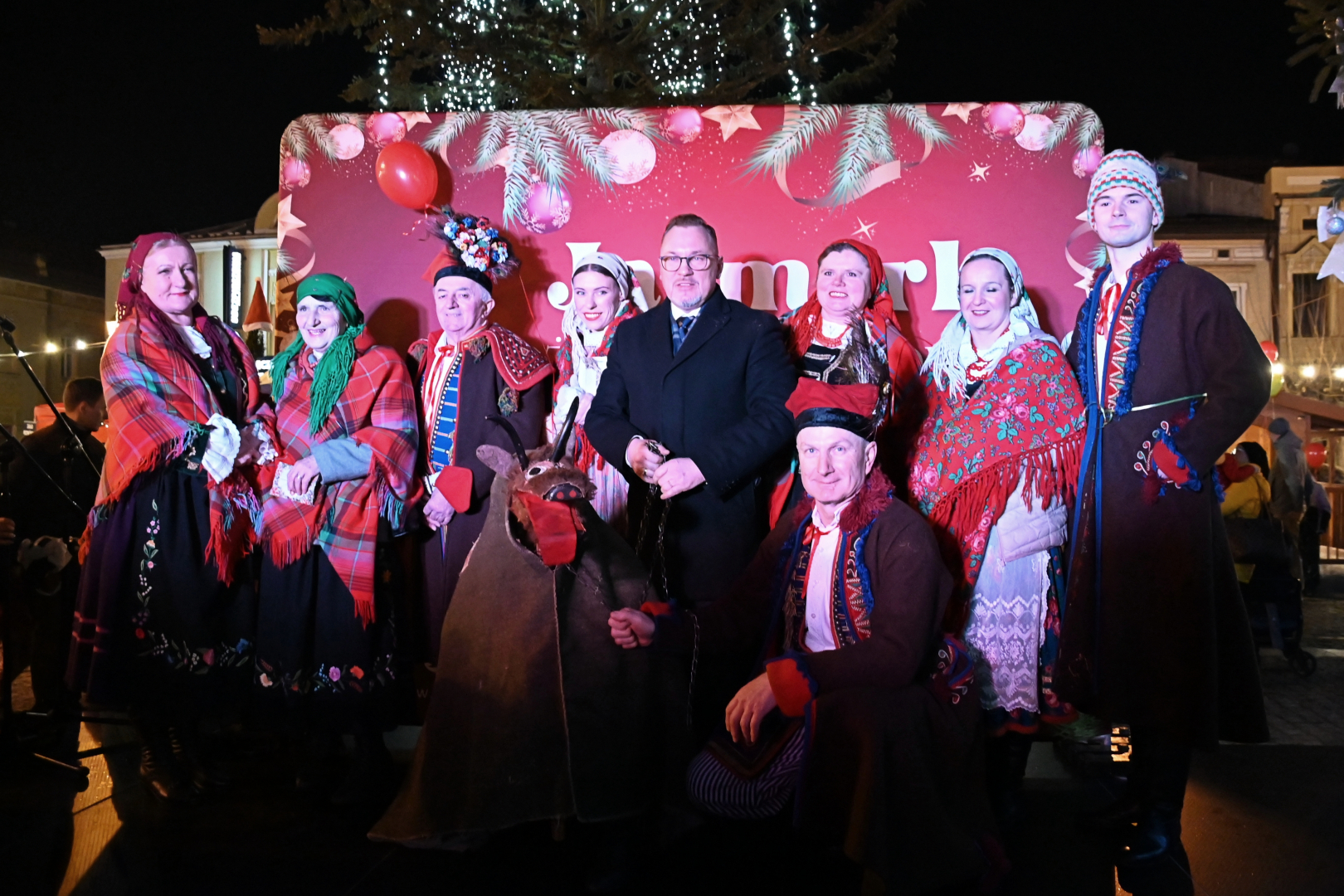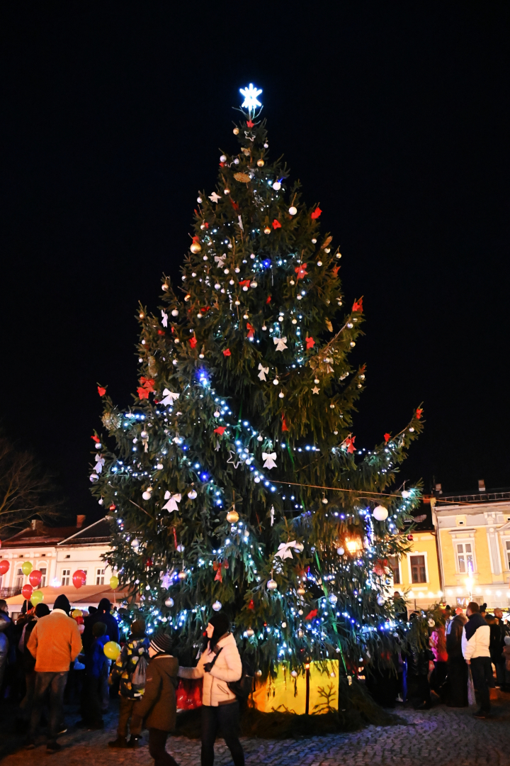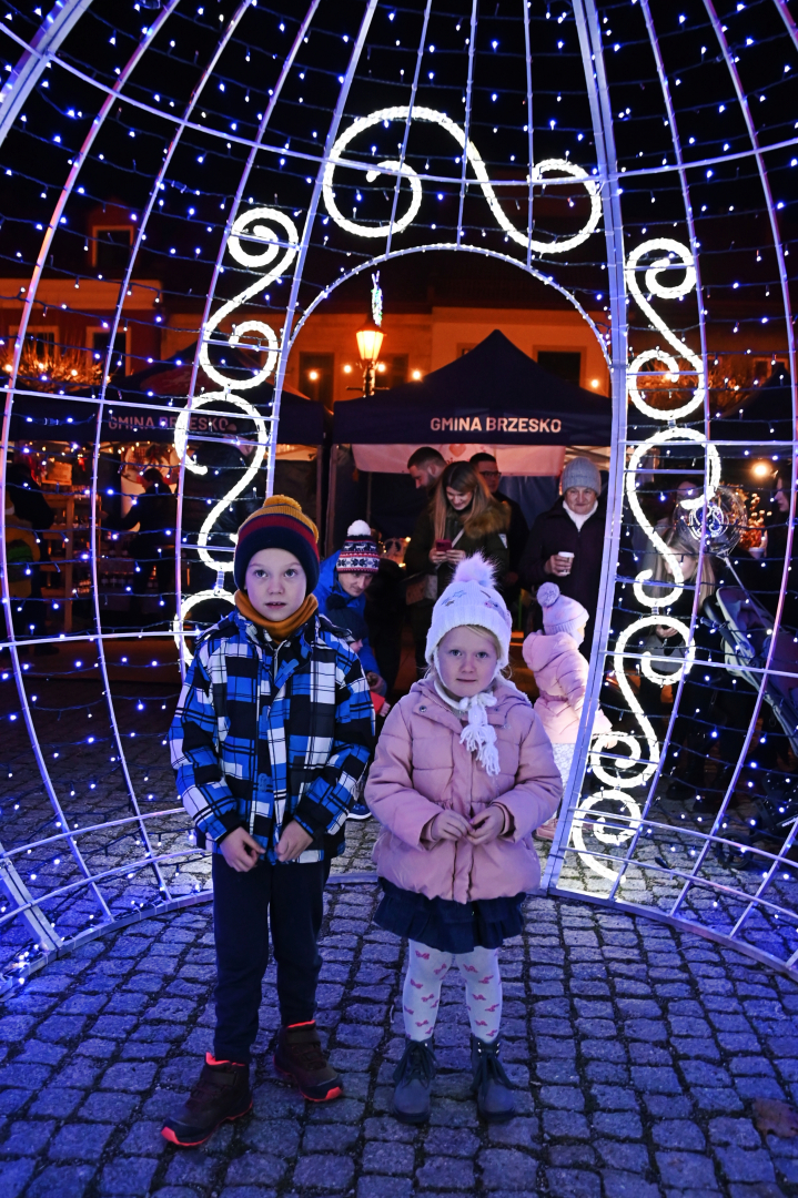 Korowód dotarł do brzeskiego Rynku, na którym nastąpiło rozświetlenie bożonarodzeniowej choinki. Życzenia świąteczne i noworoczne wszystkim mieszkańcom gminy i ich gościom złożył burmistrz Brzeska Tomasz Latocha – główny organizator Jarmarku, a Szopkę tradycyjnie poświęcił ksiądz proboszcz Józef Drabik. Po raz kolejny miało też przekazanie Światełka Betlejemskiego, a uczynili to nowa komendant Hufca ZHP Brzesko phm. Anna Poliszak oraz phm. Szymon Opoka.