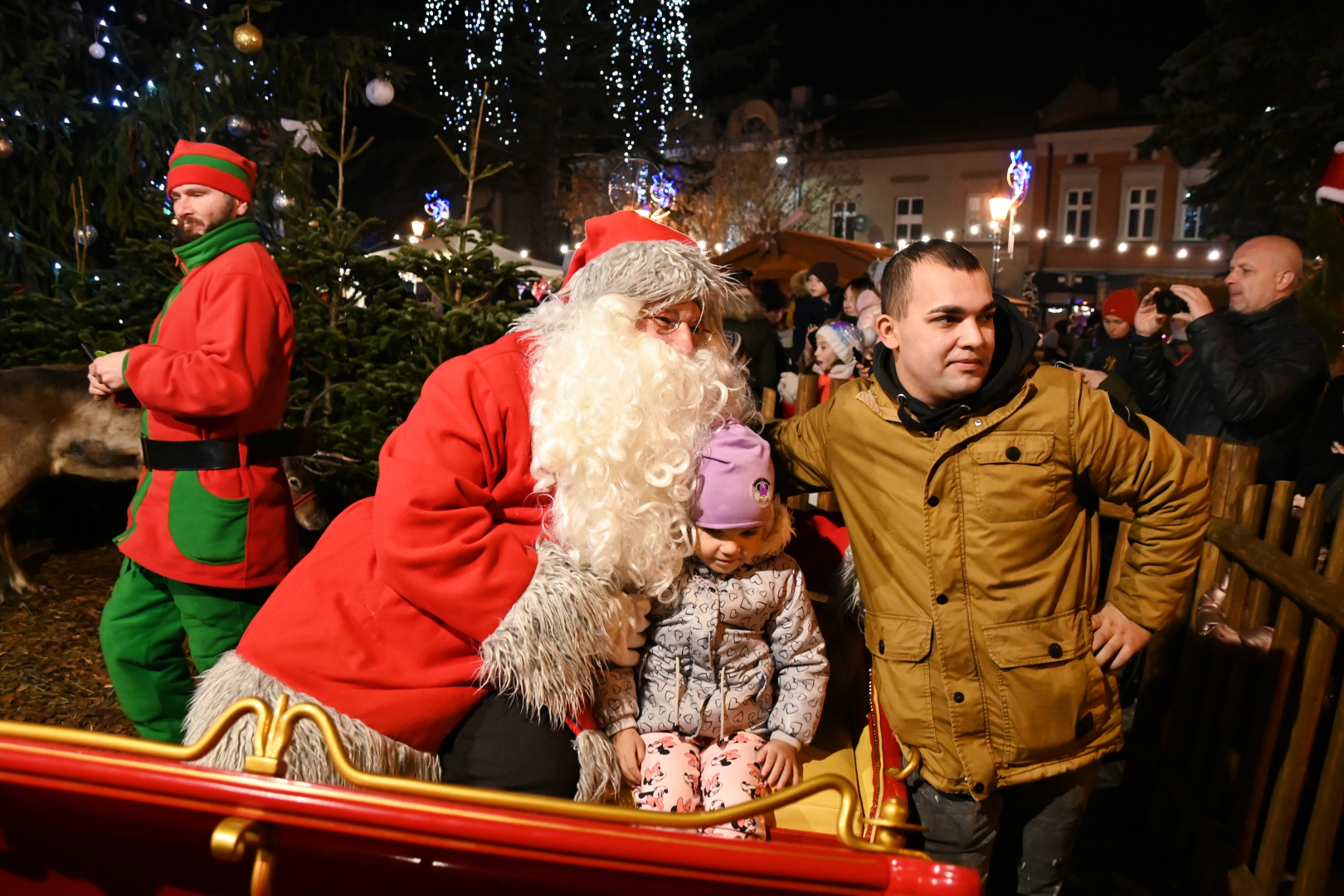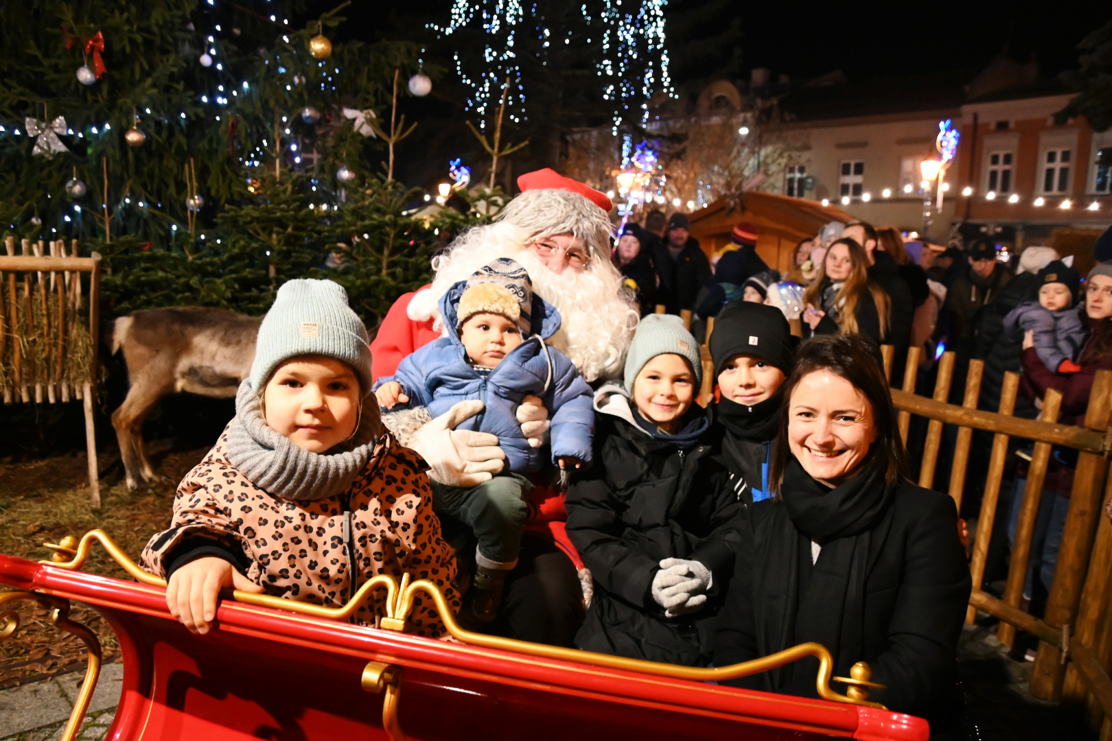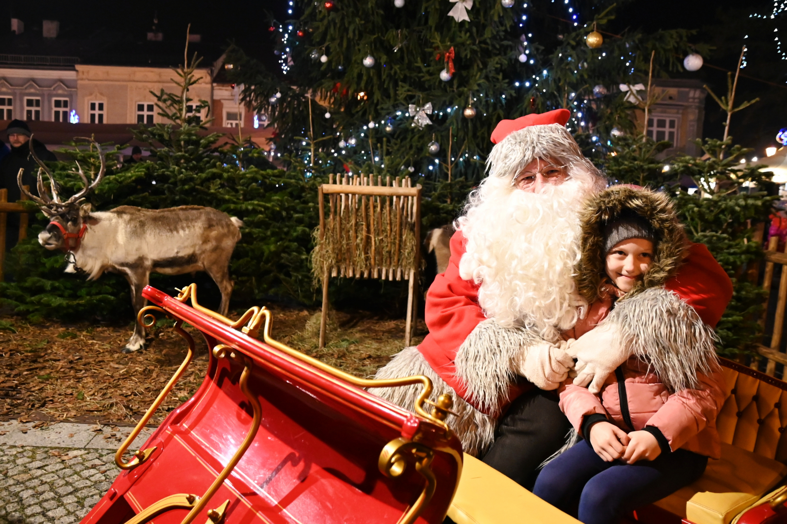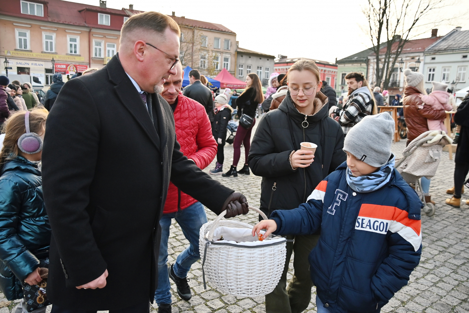 Korowód dotarł do brzeskiego Rynku, na którym nastąpiło rozświetlenie bożonarodzeniowej choinki. Życzenia świąteczne i noworoczne wszystkim mieszkańcom gminy i ich gościom złożył burmistrz Brzeska Tomasz Latocha – główny organizator Jarmarku, a Szopkę tradycyjnie poświęcił ksiądz proboszcz Józef Drabik. Po raz kolejny miało też przekazanie Światełka Betlejemskiego, a uczynili to nowa komendant Hufca ZHP Brzesko phm. Anna Poliszak oraz phm. Szymon Opoka.
