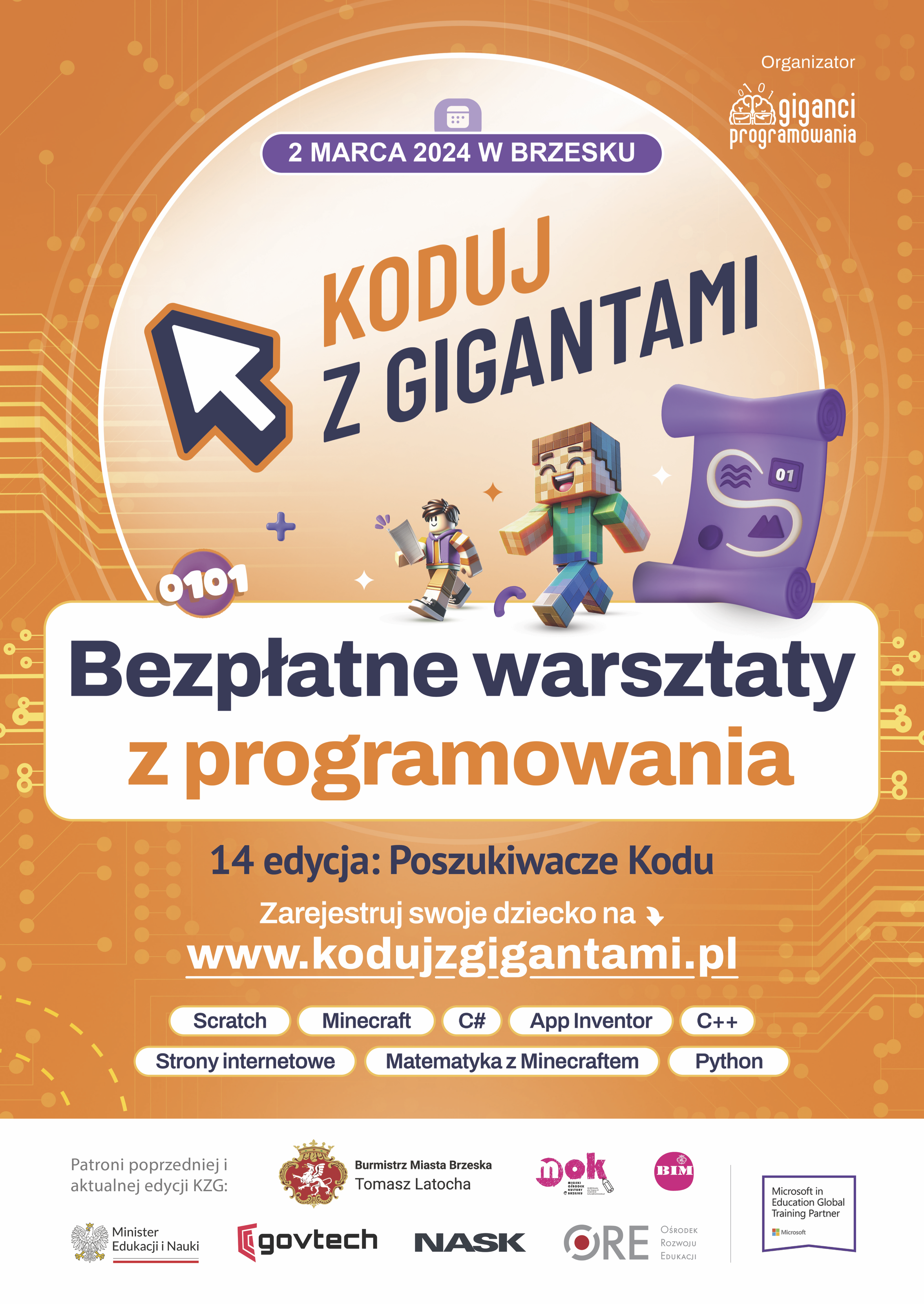 Giganci Programowania, czyli największa w Polsce szkoła programowania dla dzieci i młodzieży ogłasza zapisy na 14. edycję darmowych warsztatów z programowania - Koduj z Gigantami. Od 3 stycznia każdy może zapisać swoje dziecko do najnowszej odsłony wydarzenia, której tematem przewodnim jest hasło “Poszukiwacze Kodu”.