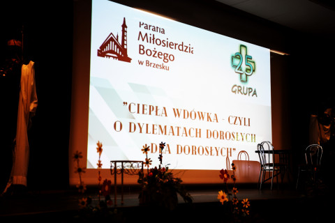 Mowa o spektaklu „Ciepła Wdówka”, którego premiera odbyła się 19 listopada ubiegłego roku w parafialnej Sali teatralnej. Zainteresowanie publiczności jak zwykle było tak duże, że spektakl powtarzano jeszcze kilka razy, w tym 13 stycznia w Sali audytoryjnej Regionalnego Centrum Kulturalno-Bibliotecznego.