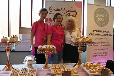 Tak zwane rozmowy kuluarowe toczyły się przez cały czas w wyjątkowej, pełnej atrakcji scenerii. Na dwóch górnych kondygnacjach budynku RCK-B gęsto było od stoisk rozstawionych przez około 50 firm prowadzonych przez kobiety, ale świadczących usługi nie tylko dla pań, chociaż najczęściej dla nich. Wiele z tych przedsiębiorstw było (obok wszystkich wymienionych tutaj tłustym drukiem) sponsorami całego wydarzenia. Były to: Akademia Urody – Małgorzata Majka, dietetyk kliniczny Klaudia Urbańska, sklep z aparatami słuchowymi Geers Dobry Słuch oraz kwiaciarnia W Pudełku – Lucyna Stachura.