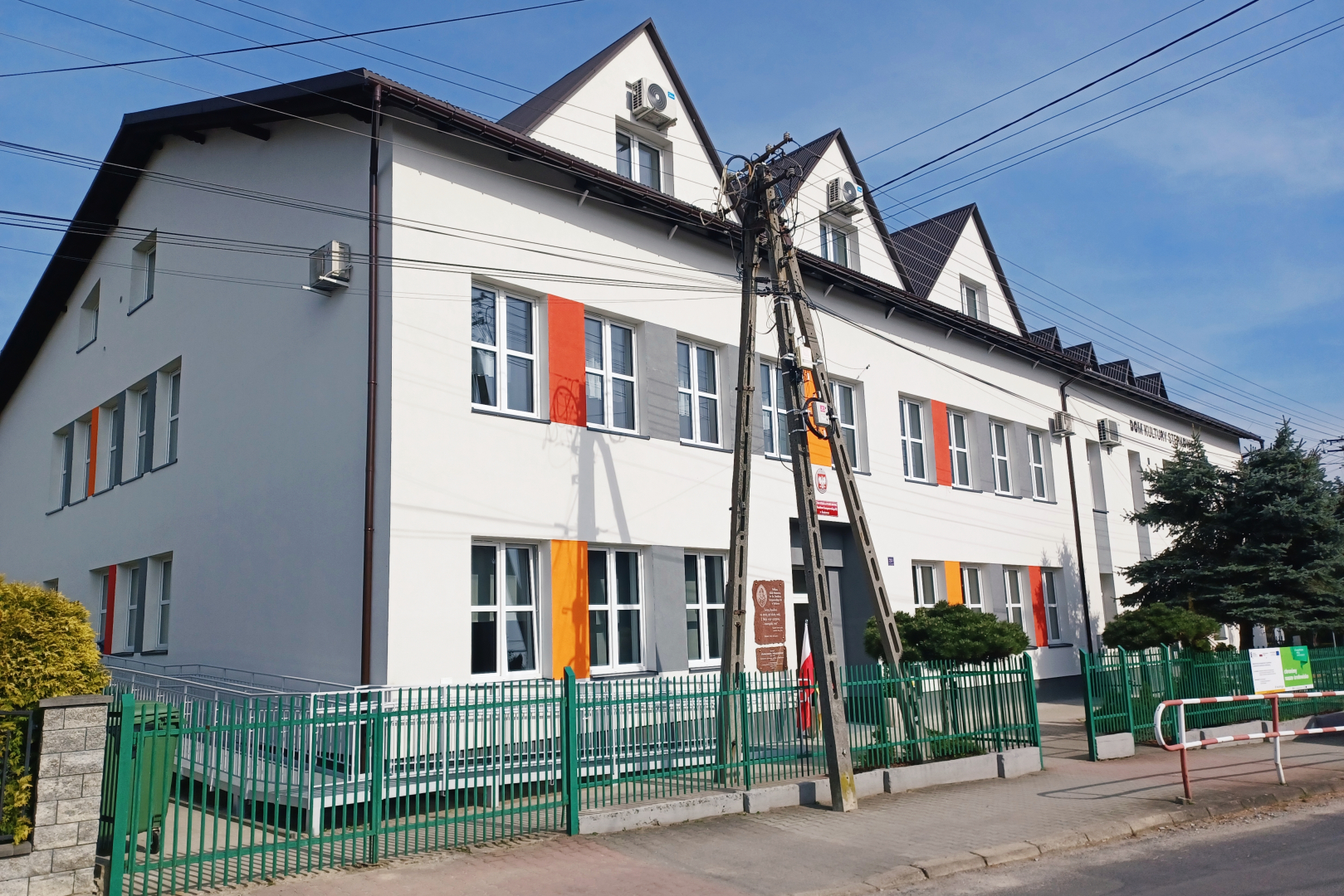 Termomodernizacji zostały poddane dwa budynki użyteczności publicznej, mające dla mieszkańców Sterkowca bardzo ważne znaczenie. To był kompleksowy remont zakrojony na szeroką skalę. Zakres prac obejmował nie tylko ocieplenie budynku, ale też izolację fundamentów, wymianę stolarki okiennej i drzwiowej oraz wymiana wyposażenia kotłowni i całej sieci centralnego ogrzewania. Dodatkowo na wspólnym dachu obu obiektów zamontowano panele fotowoltaiczne.