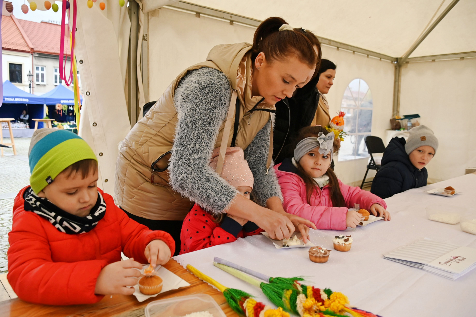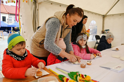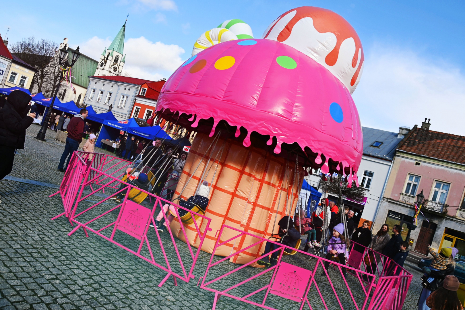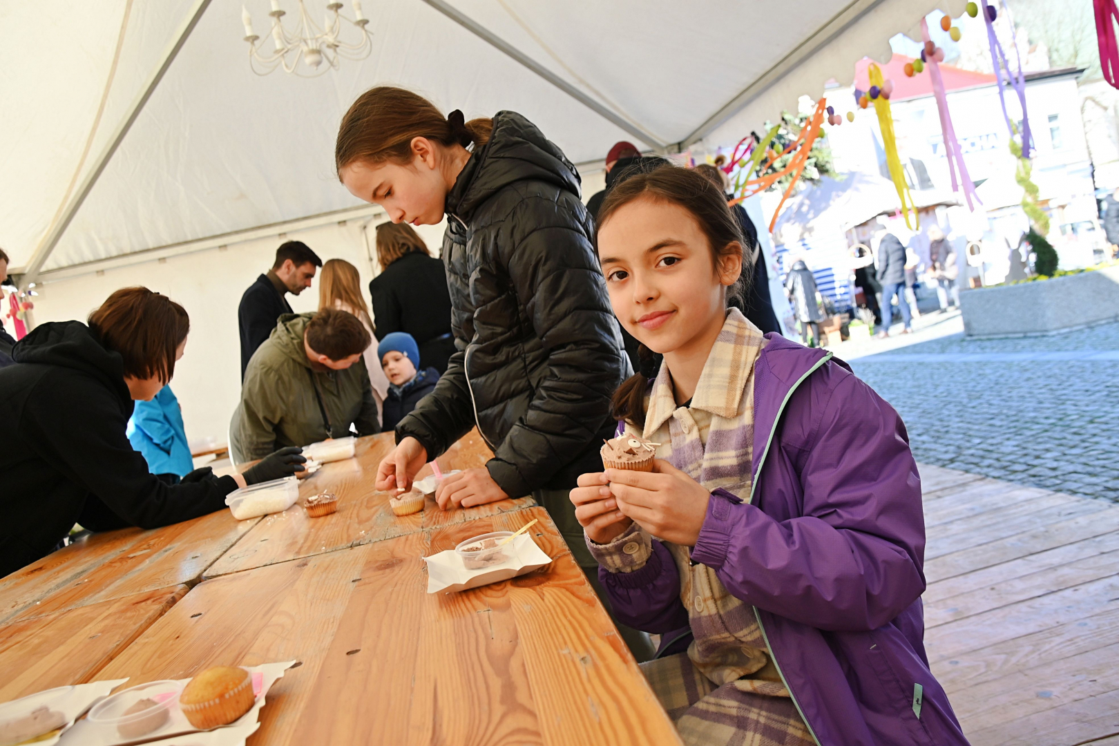 W programie tegorocznego Jarmarku zachowano sprawdzone już punkty, które cieszą się od lat niezmiennym powodzeniem. Było więc wspólne, rodzinne malowanie dużych wielkanocnych jajek XXL, w rogu Rynku została ustawiona dla dzieci łańcuchowa karuzela, przed którą po każdym rozjaśnieniu na niebie ustawiały się natychmiast spora kolejka. Nowością były przyjęte z entuzjazmem Warsztaty Cukiernicze dla Dzieci prowadzone przez Monikę Domańską, szefową firmy Smakołyki od Moniki. Oraz konkurs na najpiękniejszą i najpyszniejszą babkę wielkanocną. Przede wszystkim jednak cały plac wypełniony został ponad 30 stoiskami obsługiwanymi przez lokalnych przedsiębiorców – producentów, restauratorów i handlowców, których ofertę znakomicie uzupełniały lokalne Koła Gospodyń Wiejskich. Po raz kolejny spełnił się najważniejszy cel, jaki przyświeca organizatorom.